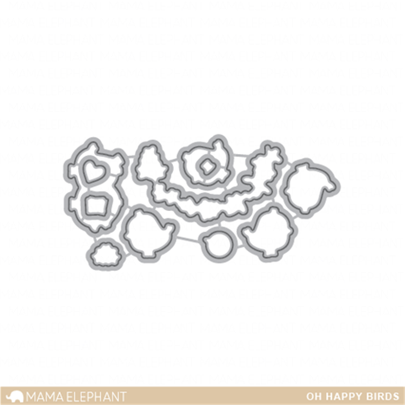 Lækkert diessæt fra Mama Elephant. Diessættet hedder Oh Happy Birds og passer til stempelsættet af samme navn. Sættet indeholder en samling af fine dies, der kan bruges sammen med stempelsættet eller alene. Fuglene måler ca. 2,3x2,3 cm.