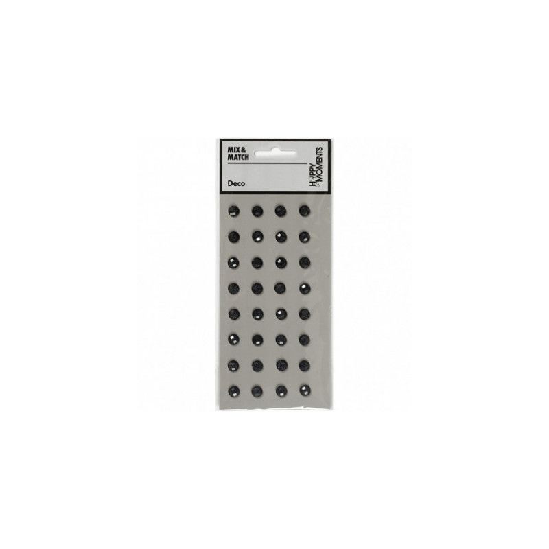Add On til September Kittet fra PTW KitKlub. Black Rhinestones Deco fra Happy Moments indeholder 32 halvperler med sort glitter effekt og en smuk facetsleben overflade der give en rigtig lækker effekt når man ser det i lyset. Hver rhinsten måler ca. 8 mm i diameter og er perfekte til at dekorere både kort og layouts.