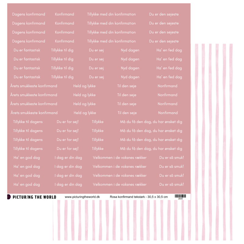 Add on Marts - PTW Design - Rosa Komfirmand Tekstark 12x12 klippeark