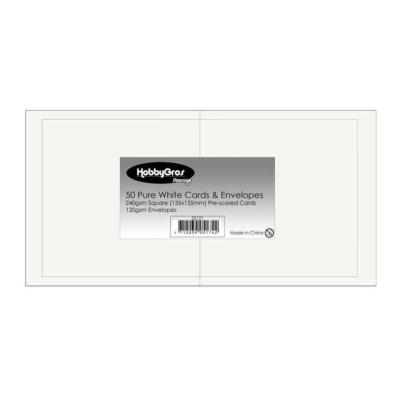 Add on Januar - HobbyGros Storage - 50 Sæt 13,5x13,5 cm Kort/Kuverter - Pure White