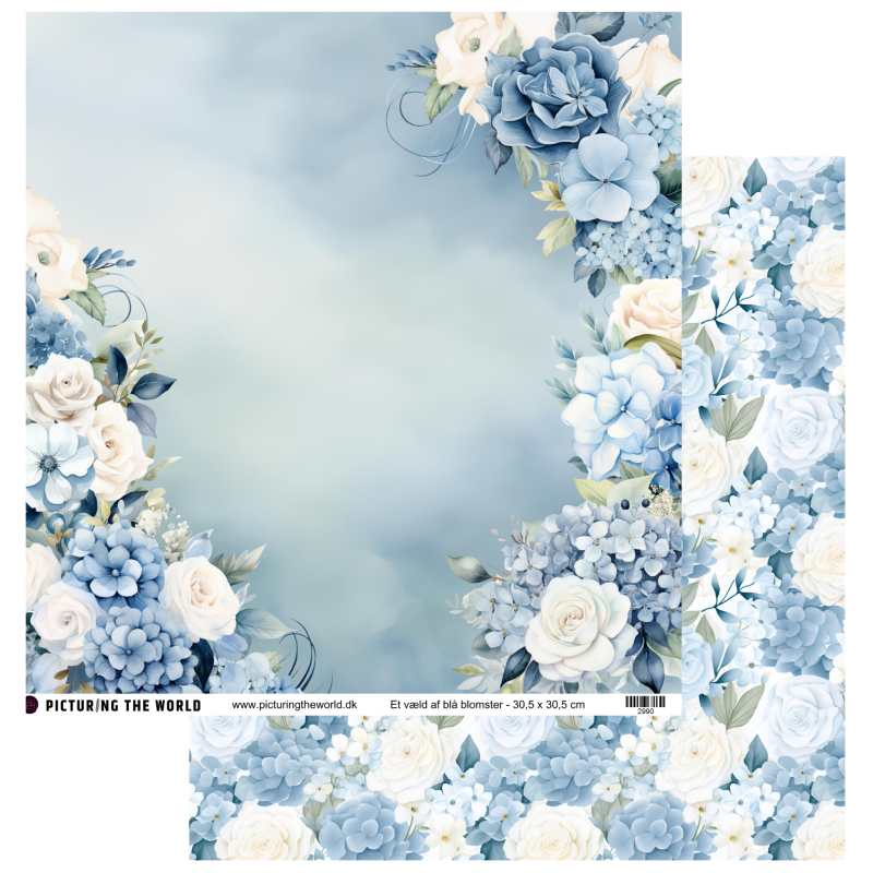 Add on Juni - PTW Design Blå Blomsterdrømme - 12x12 Mønsterpapir - Et Væld af Blå Blomster