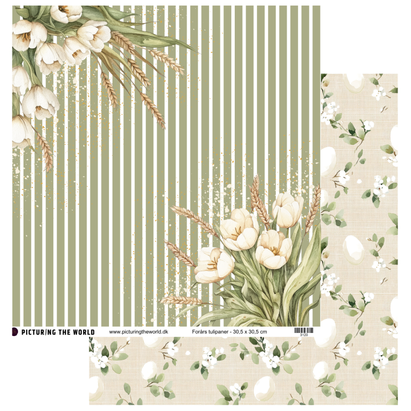 Papir i vores eget Picturing the World design. Papiret er designet specielt til vores April kit 2025.