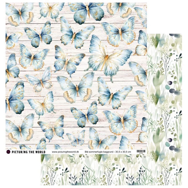 Add on Juni - EKSTRA PTW Design - Blå Sommerfugle Baggrund 12x12 mønsterpapir