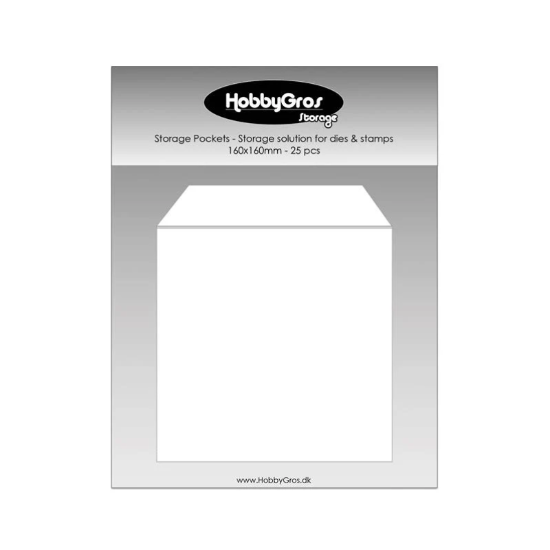 Denne pakke med 25 opbevaringslommer fra HobbyGros Storage er perfekt til at opbevare dine stempler, dies og måske endda dine papir rester. Hver lomme måler 160x160 mm, hvilket svarer til en kvadratisk opbevaringslomme.
