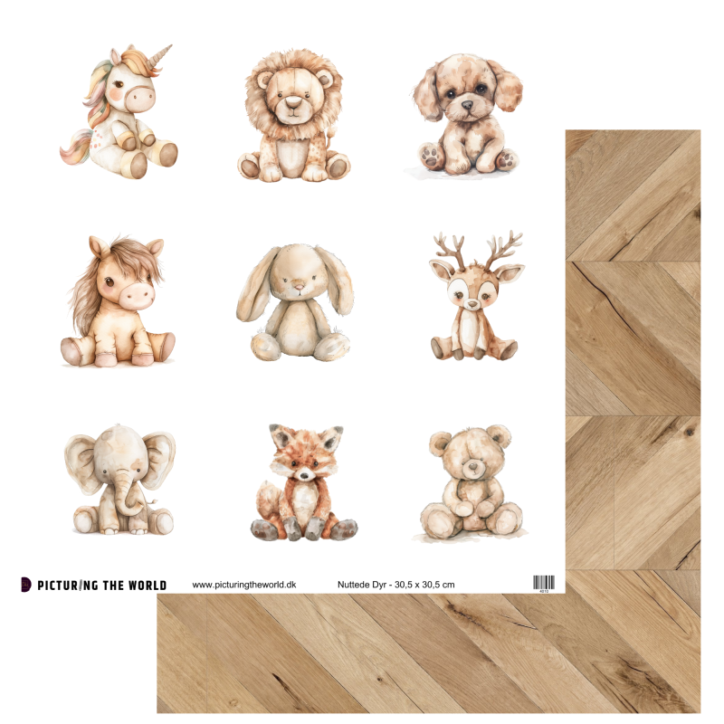 Add on August - Velkommen Lille Du - Enkeltark - Nuttede Dyr 12x12 mønsterpapir