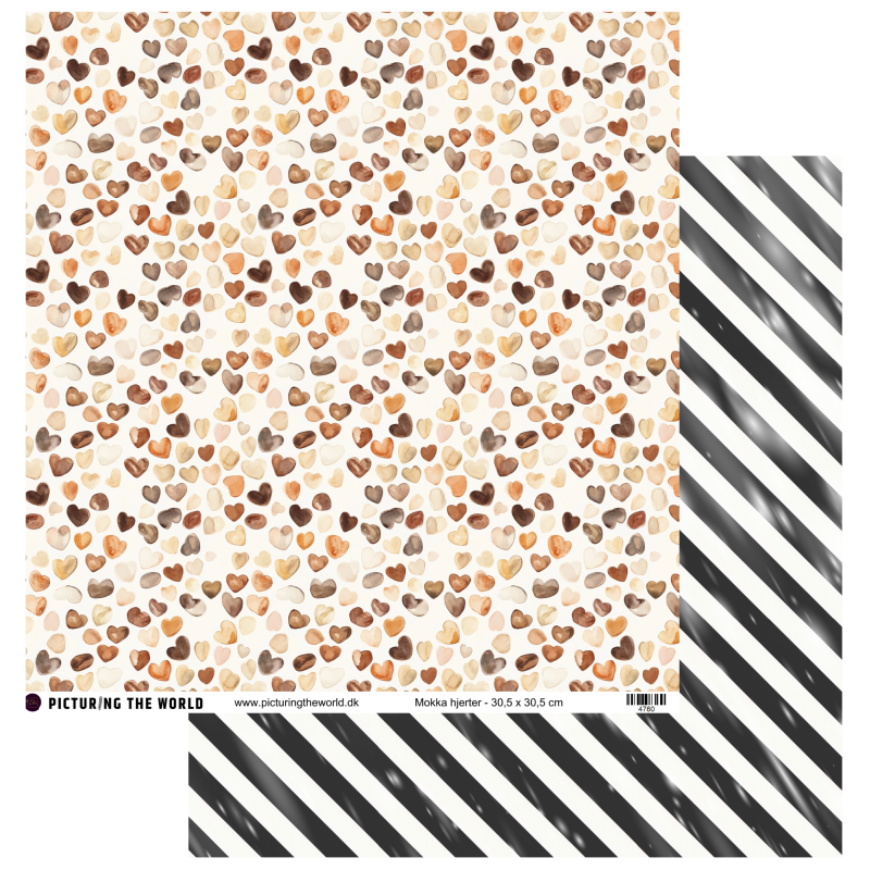 Add on Januar - EKSTRA PTW Design - Mokka Hjerter12x12 mønsterpapir - sælges kun til kitklubmedlemmer