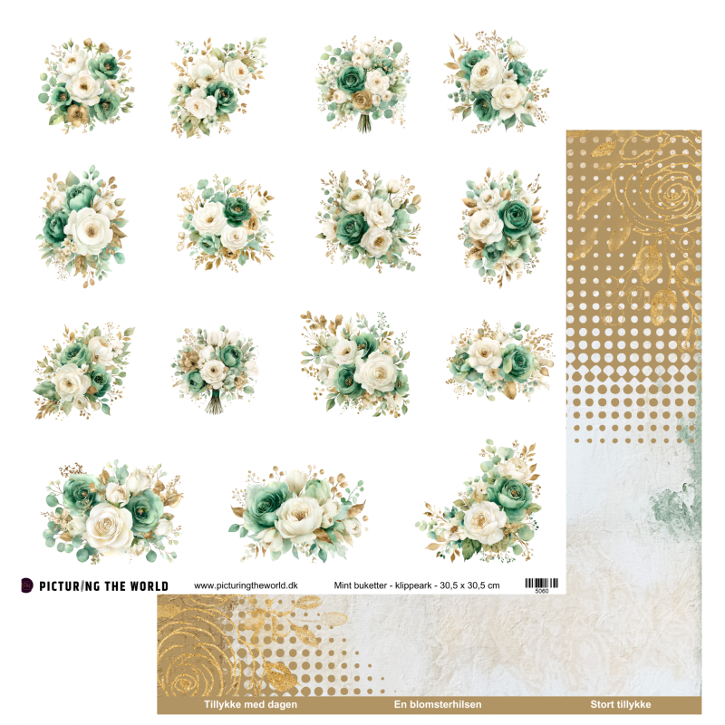 PTW Design - Mint Blomsterdrømme - Mint Buketter - 12x12 klippeark