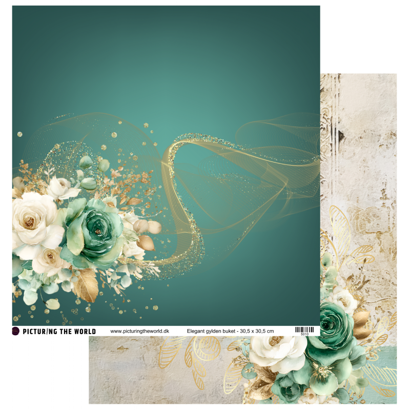 PTW Design - Mint Blomsterdrømme - Elegant Gylden Buket - 12x12 mønsterpapir