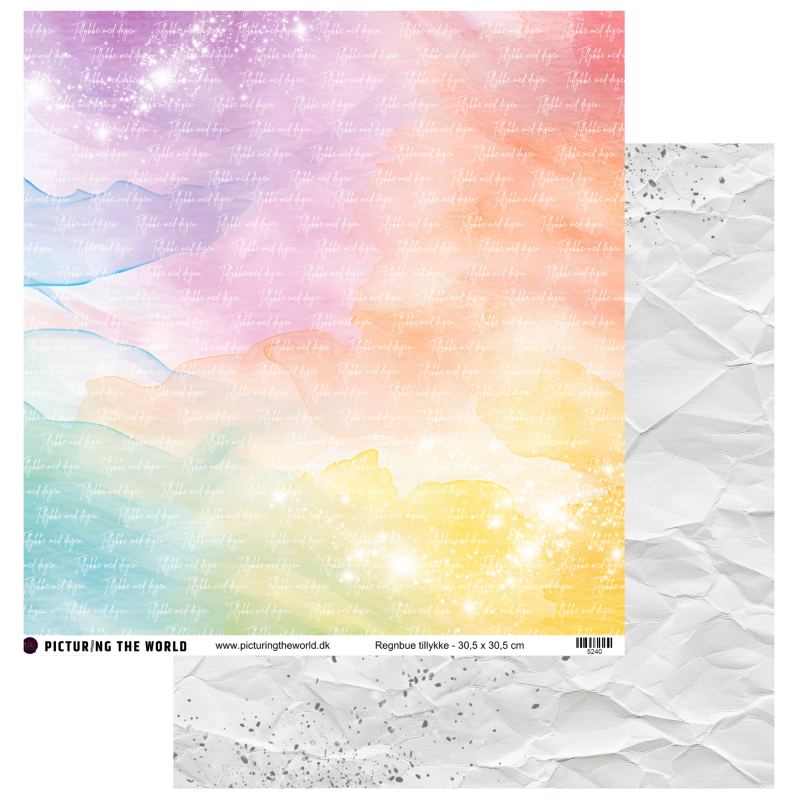 Add on April - EKSTRA PTW Design - Regnbue Tillykke 12x12 mønsterpapir - sælges kun til kitklubmedlemmer