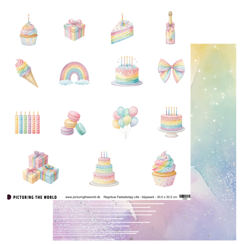 Nye Add on April - EKSTRA PTW Design - Regnbue Fødselsdag Lille 12x12 Klippeark - sælges kun til kitklubmedlemmer