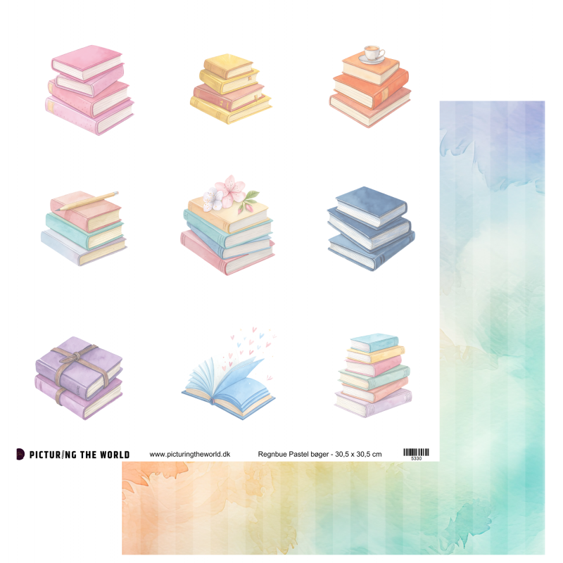Nye Add on April - PTW Design - Regnbue Pastel Bøger 12x12 Klippeark - sælges kun til kitklubmedlemmer