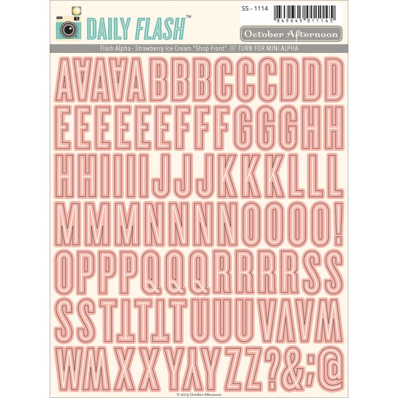 En fin pakke med Bogstav stickers fra October Afternoon. Denne pakke indeholder en superfed skrifttype på den ene side og på den anden side er der mini bogstaver.