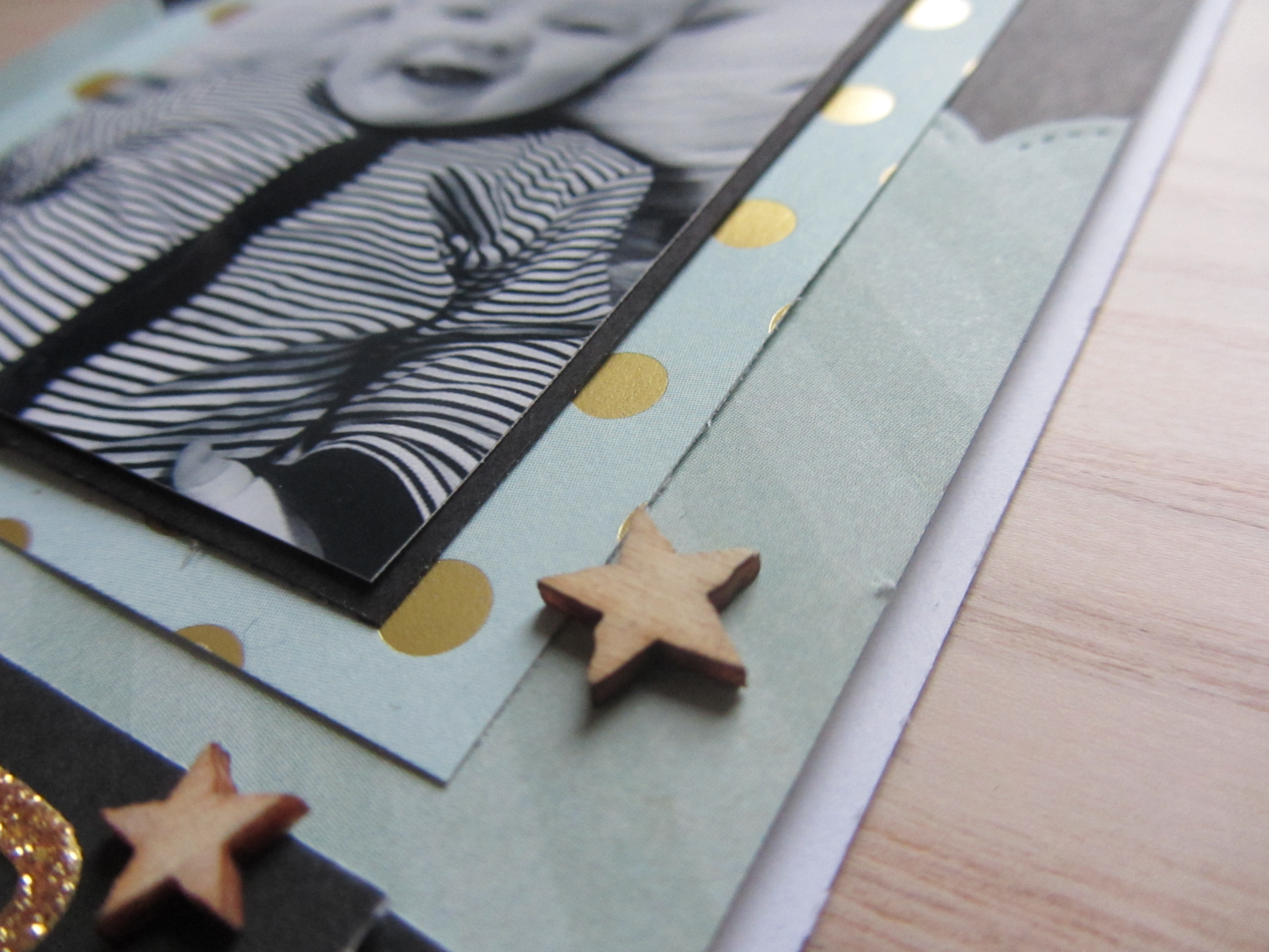 Jeg har primært brugt dies fra Mama Elephant. Det stribede mønsterpapir er fra Simple Stories, mens papiret med guldprikker er fra et ældre kit i kitklubben.