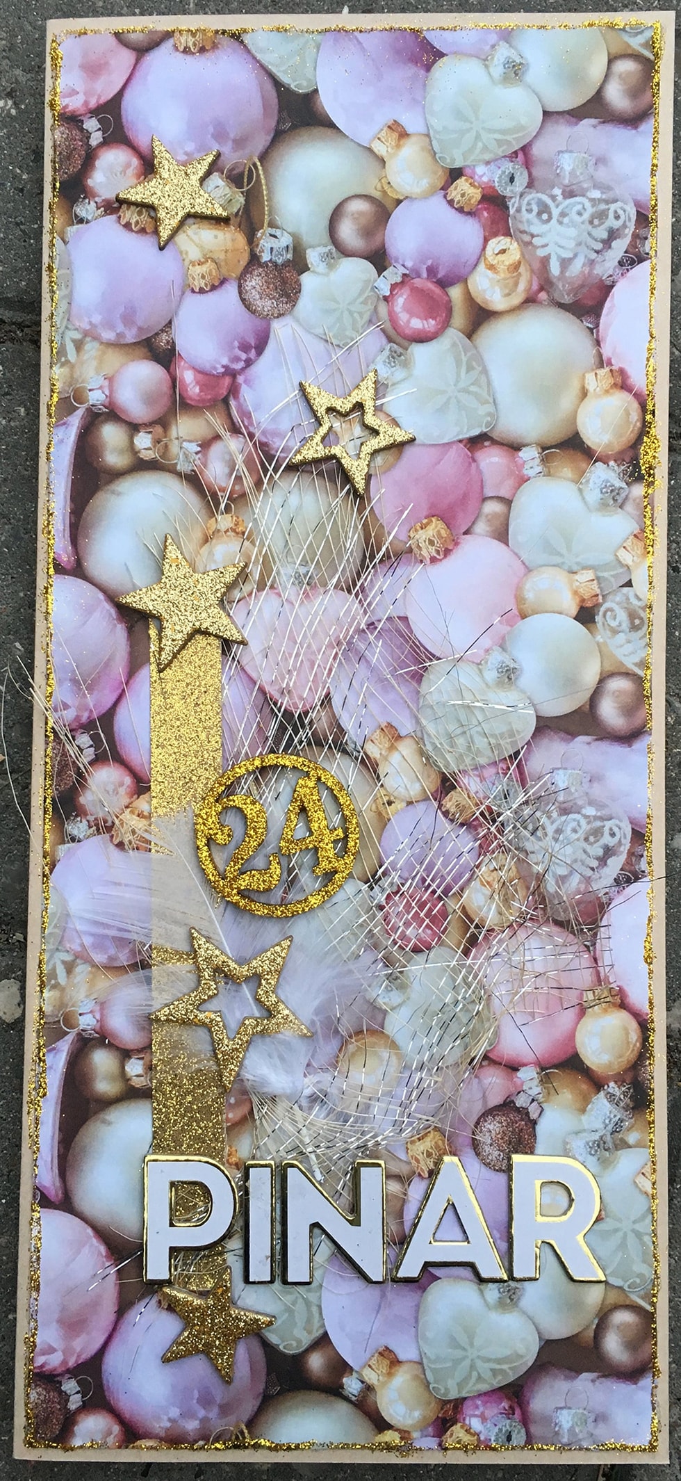 Dette kort, som skal bruges til en julegave, hvor der skal være billetter inden i.Har jeg brugt materialer fra december månedskittet.Ha' en dejlig og kreativ dag, Annette