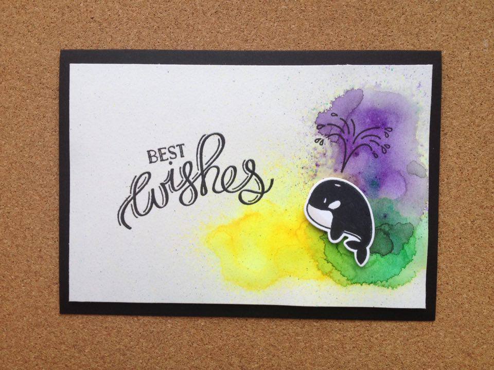 Idag har jeg igen fået findet mit Mama Elephant Whale Wishes stempelsæt frem og fået lavet et "de bedste ønsker" kort