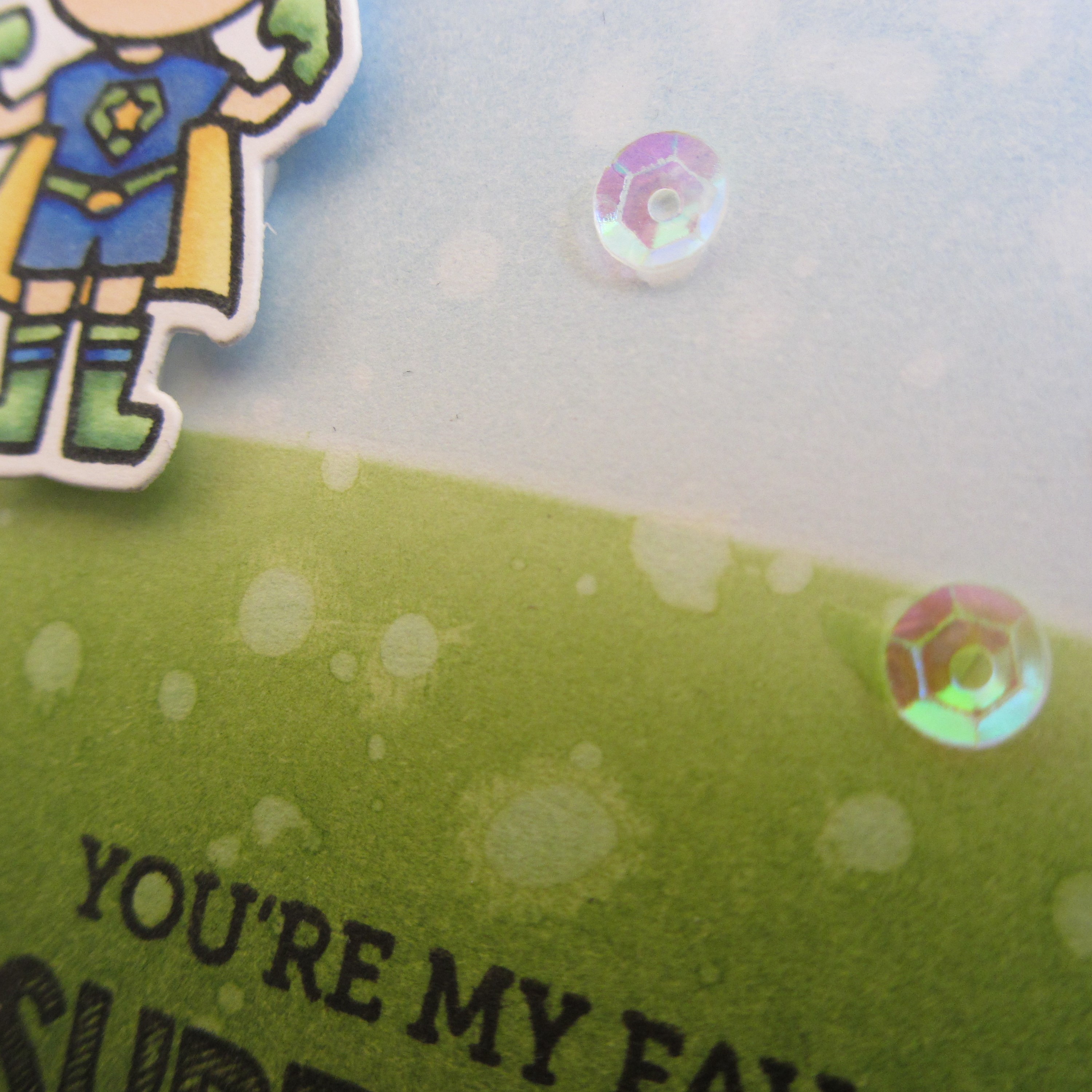 Jeg har til dette kort brugt stempler og dies fra Mama Elephants Tiny Heroes sæt.