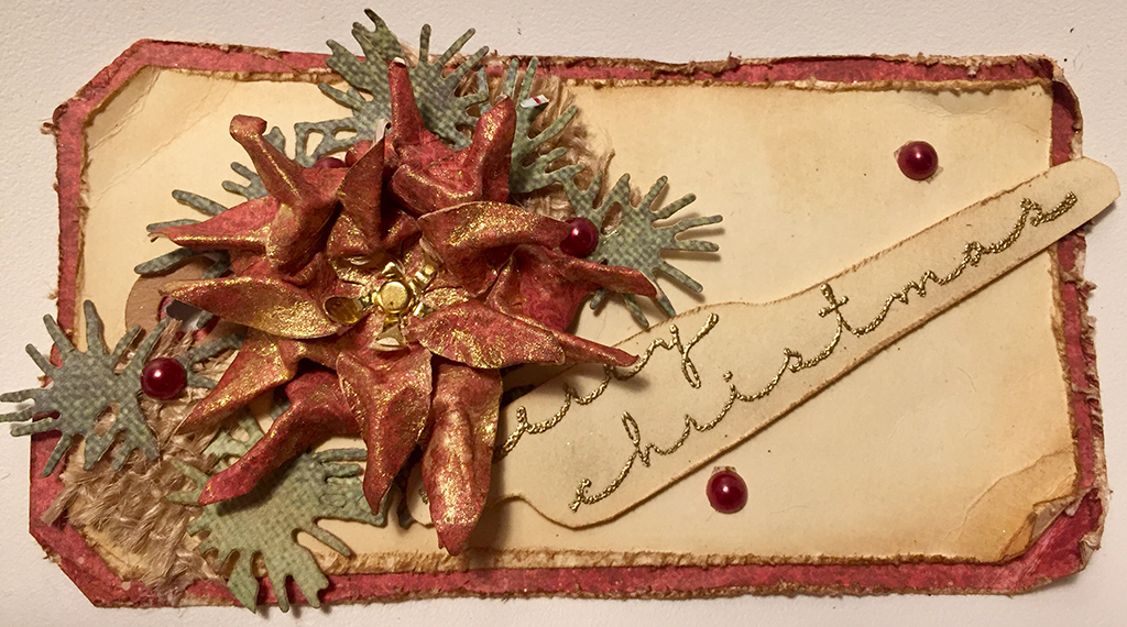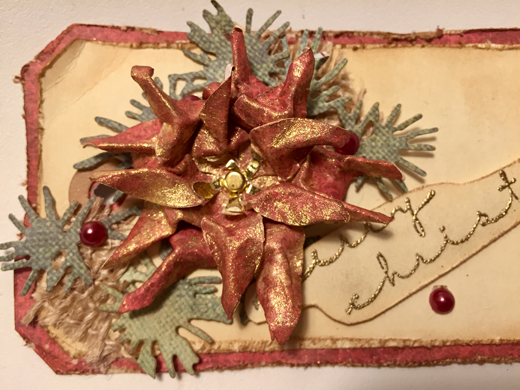 Jeg bruger en bonefolder, nusser med fingrene, krasser let opå kanterne og former bladene til en skøn og rustik julestjerne.