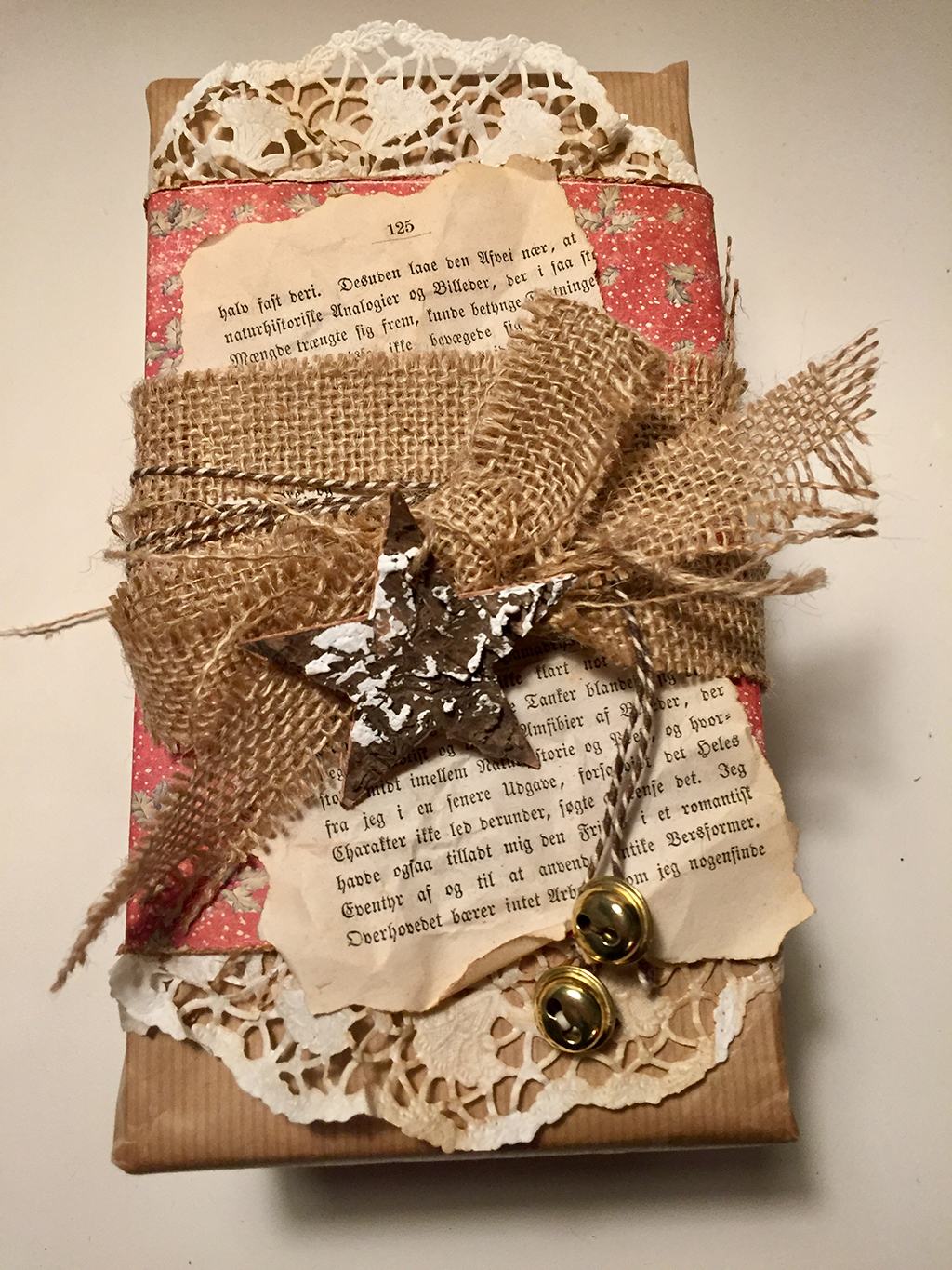 Gaven er pakket ind i brunt genbrugspapir.