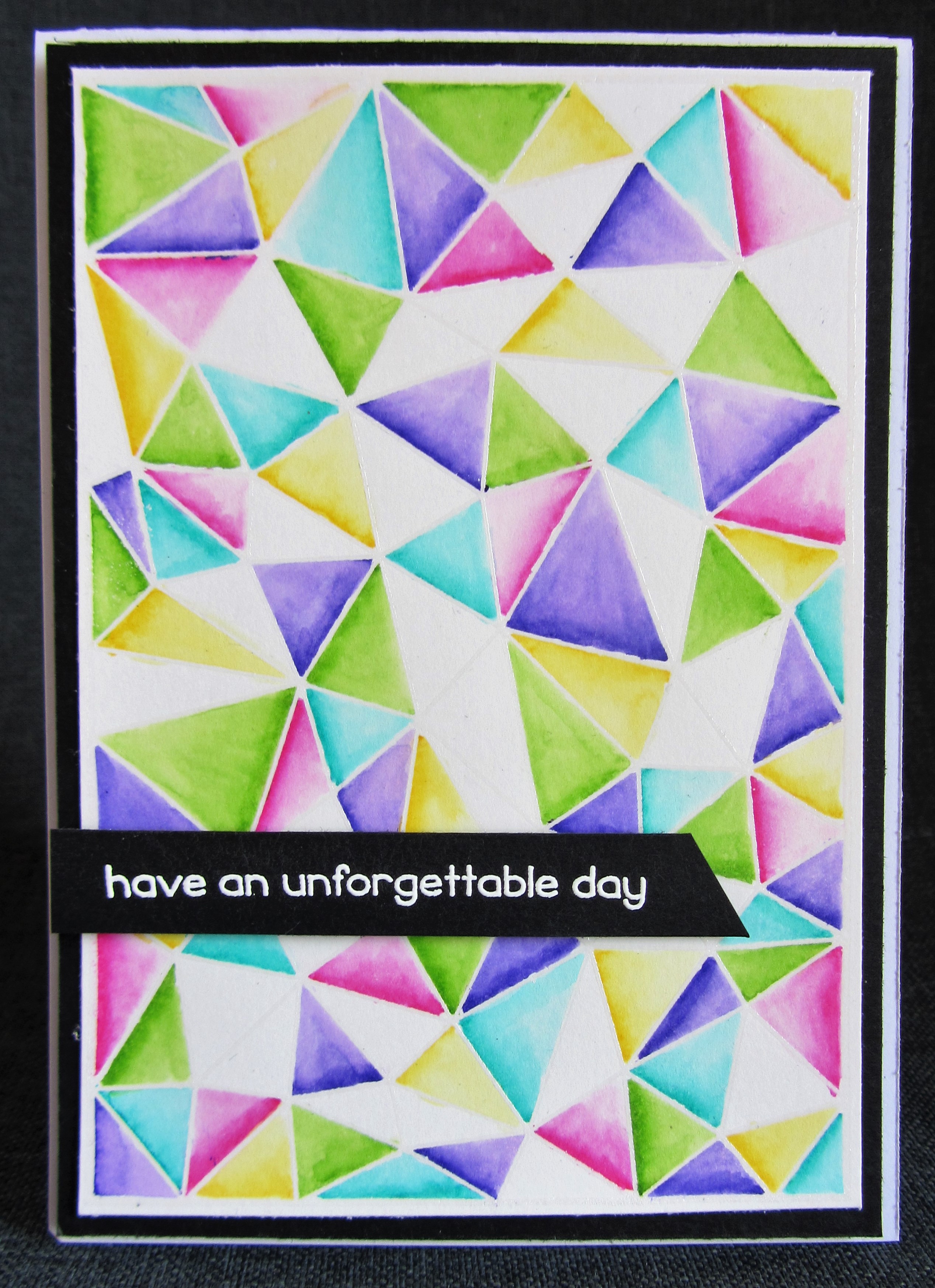 Jeg har leget lidt med et af de nye stempler, som butikken har fået hjem fra Krumspring. Stemplet hedder One Triangle at a Time.