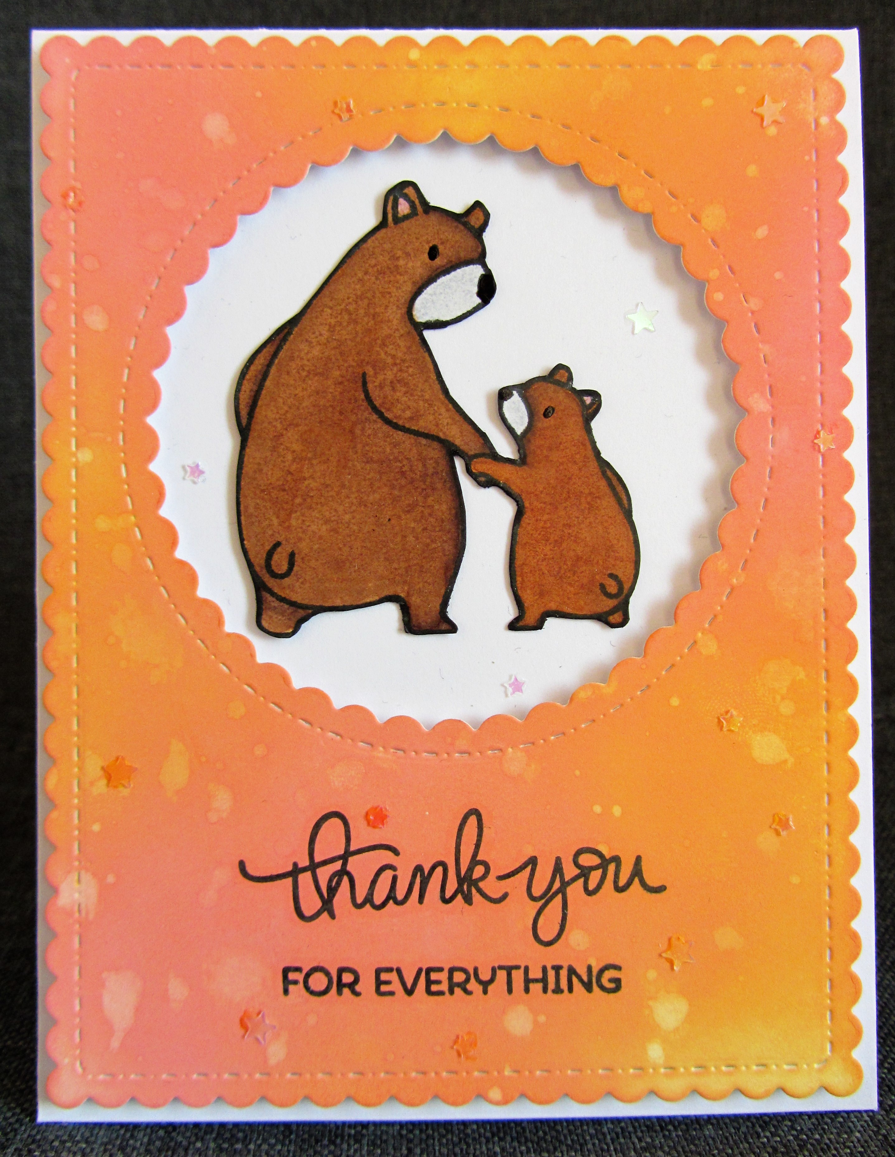 Bjørnene er fra Mama Elephants Bear Hugs stempelsæt, og er farvelagt med Copics.