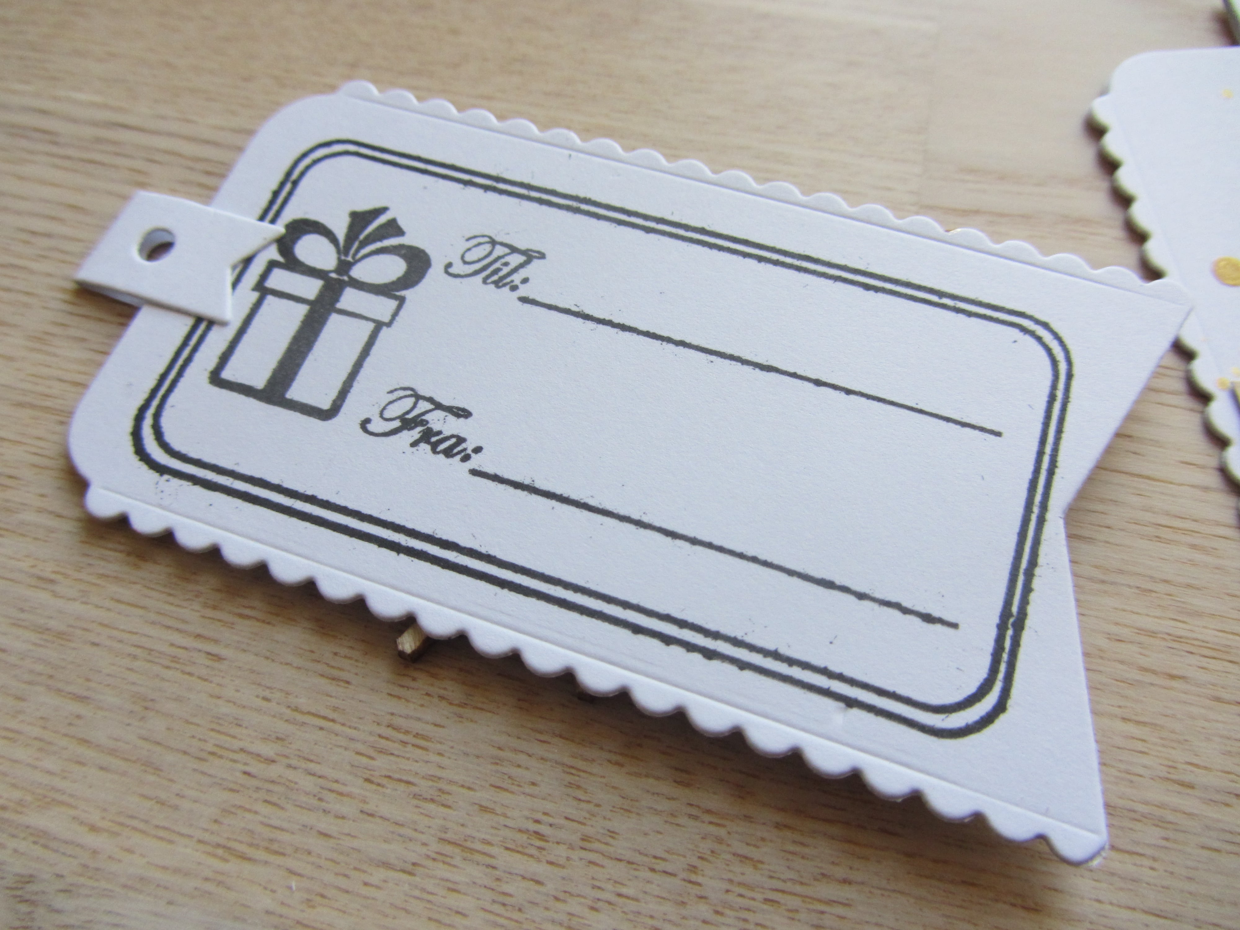 I år har jeg brugt Mama Elephants Tags a lot die som udgangspunkt. I diesættet er der en masse lækre tags, og jeg har brug den med bølgede kanter. Hul delen er også en del af diesættet.