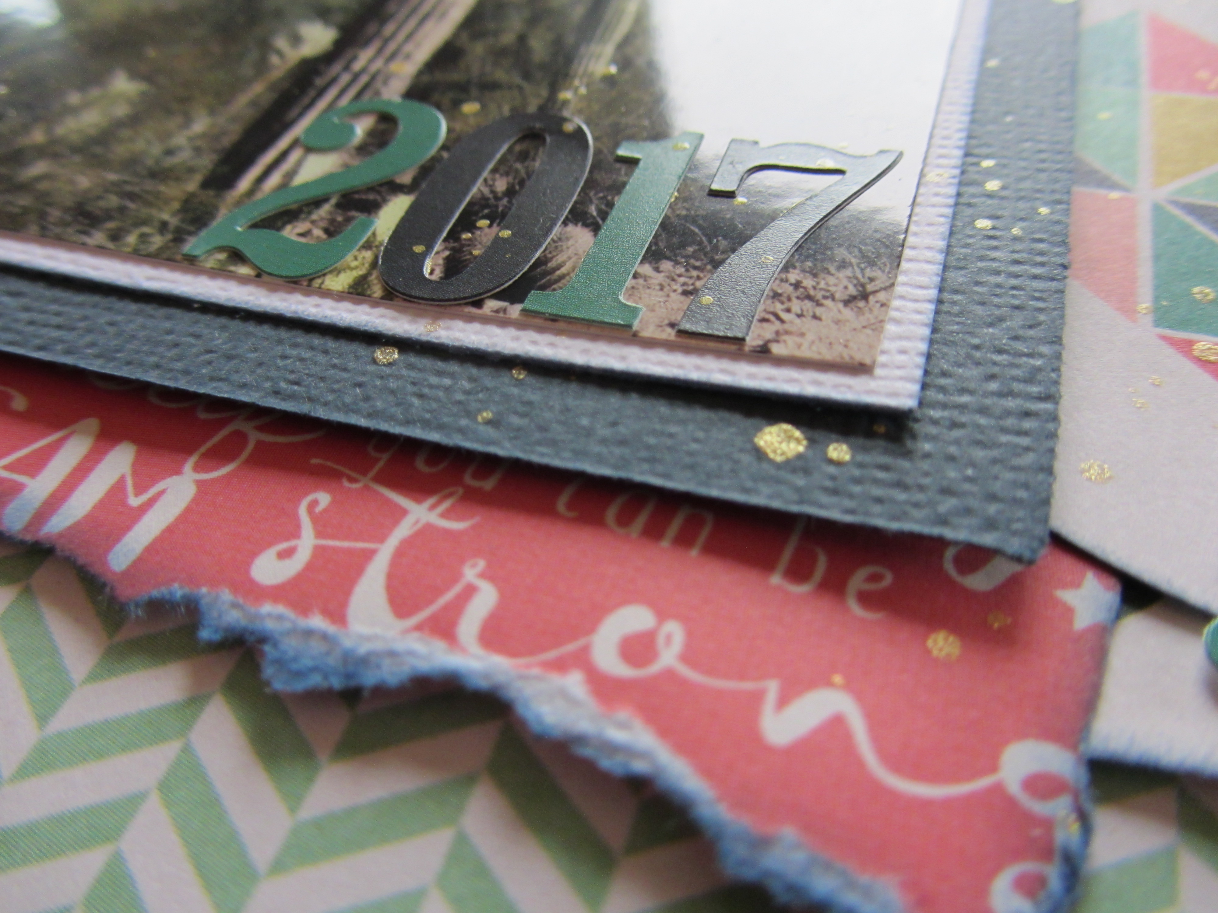 Jeg har i stedet for at skære papirerne revet dem. Det giver en fed struktur. Alle kanter er sværtet med Distress Ink i Faded Jeans.