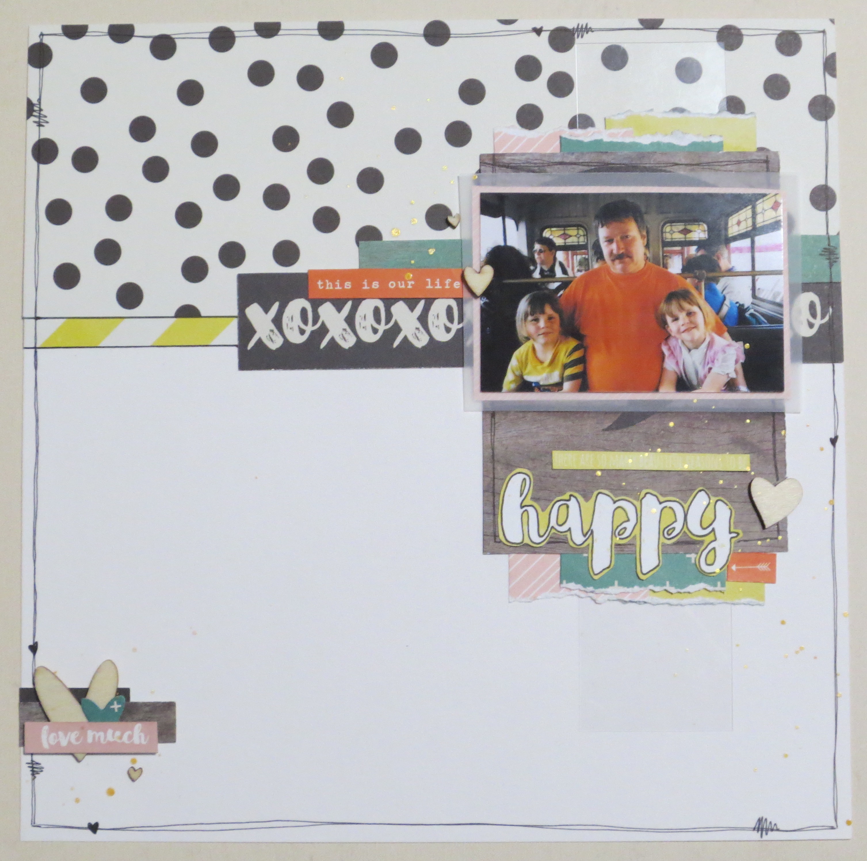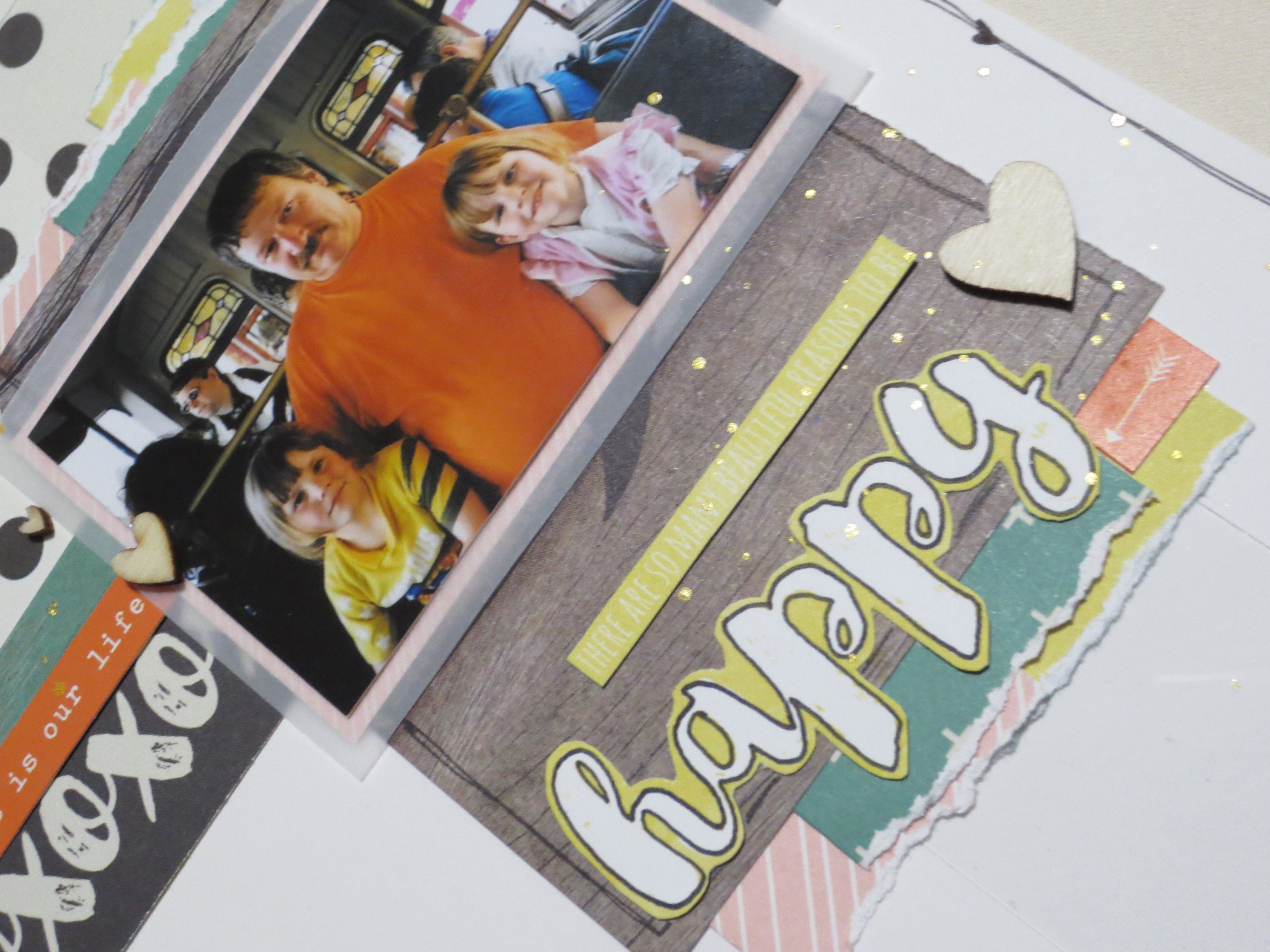 Lige som mit layout fra sidste uge er dette lavet vha. Simple stories Life in Color samlingen, med enkelte elementer fra mit eget stash af ting, f.eks. vellum, Acetate, guld heidi swapp color shine og wood veneer hjerter.