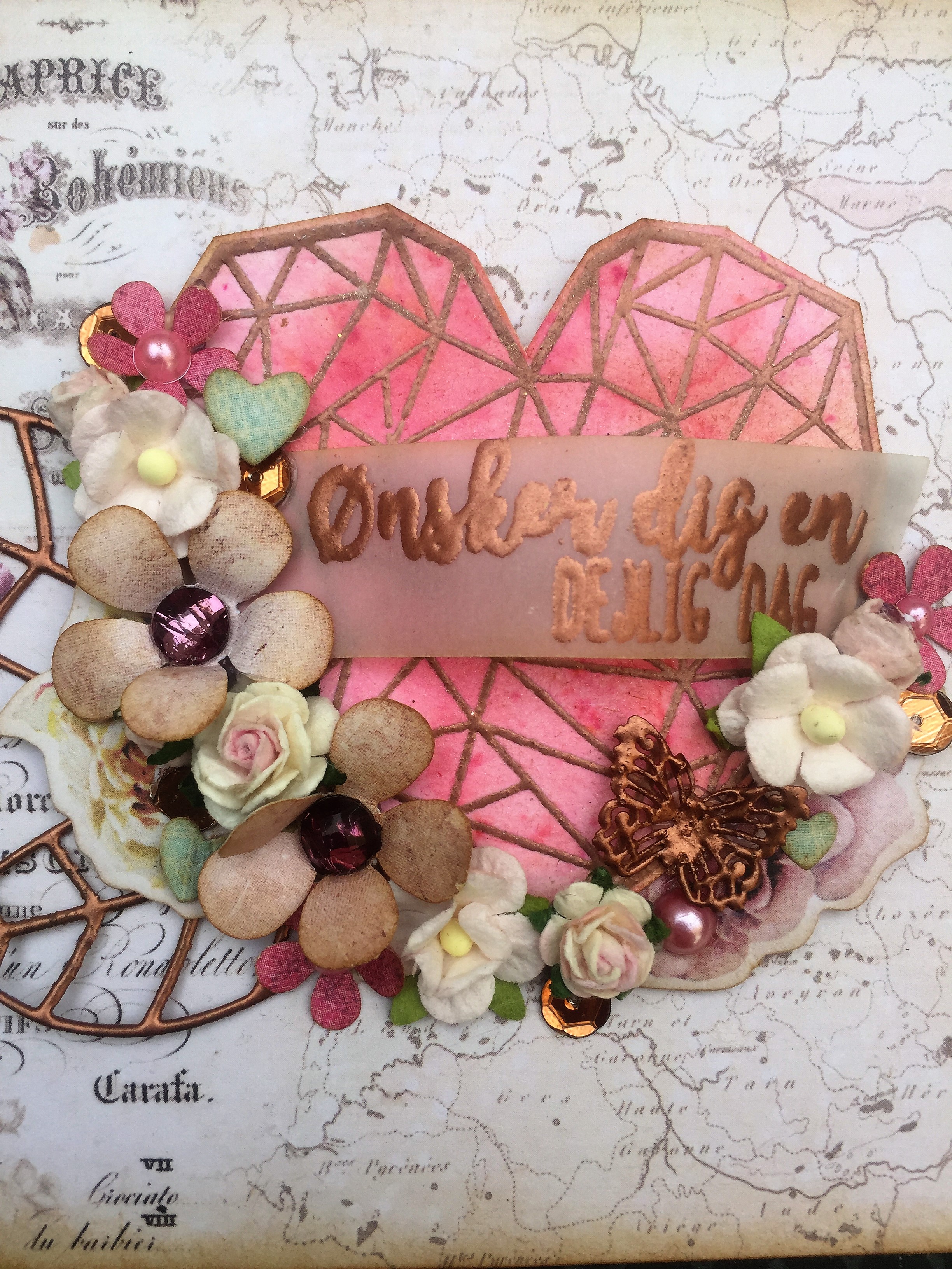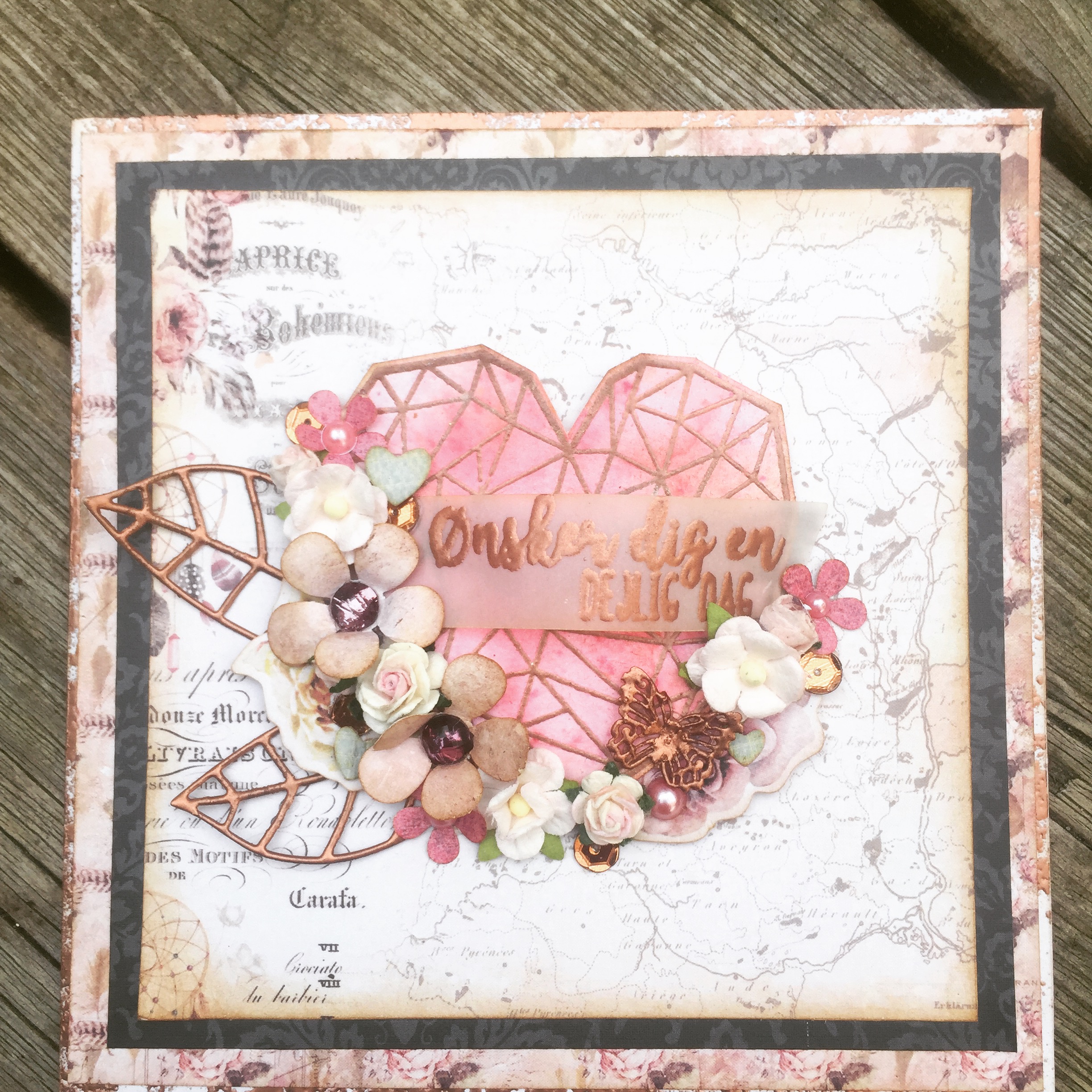 Jeg har denne gang lavet et romantisk kort med detv lækre hjertestempel fra Krumspring og Primas lækre papirserie "Wild and free".