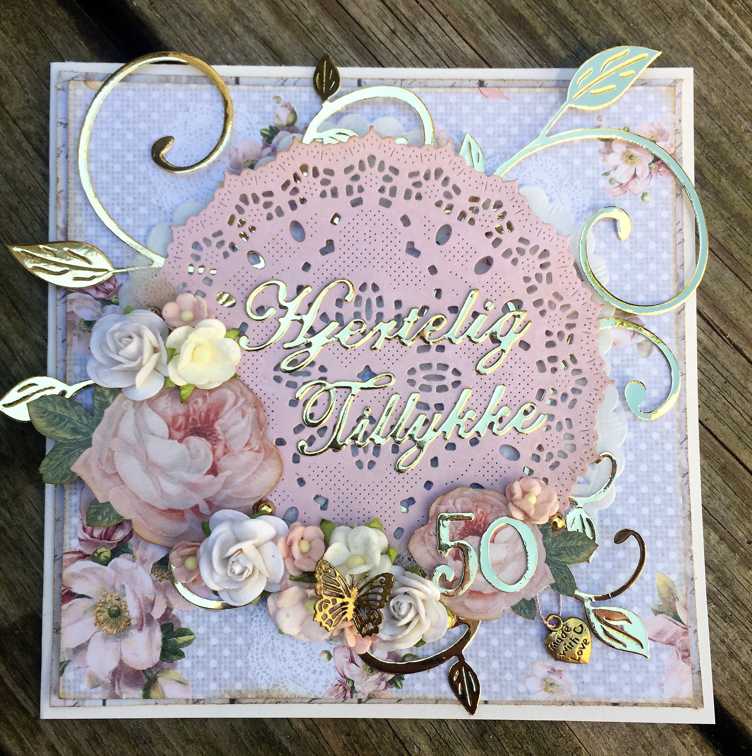 Denne gang har jeg lavet et smukt og meget romantisk kort til et guldbryllup.