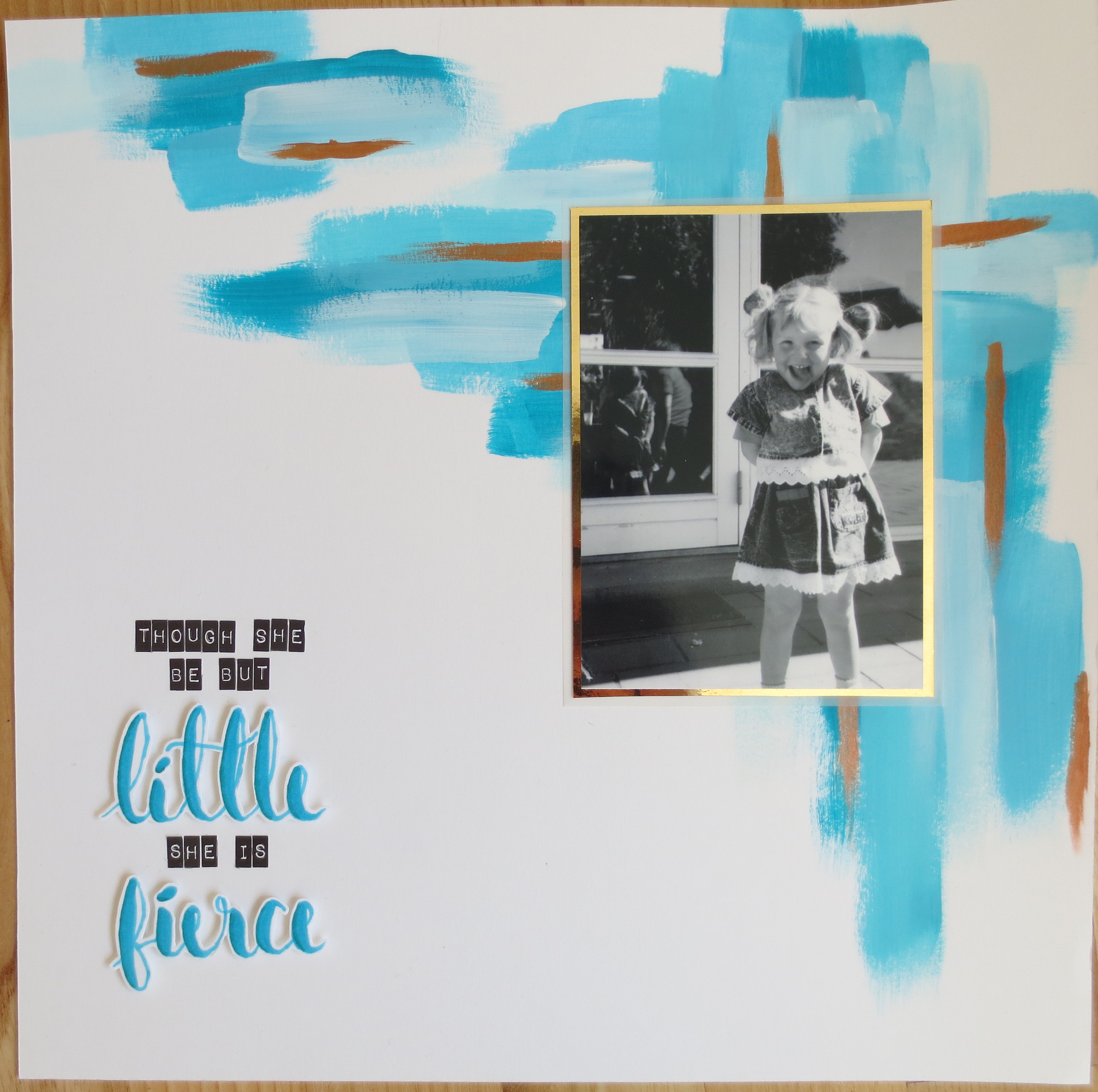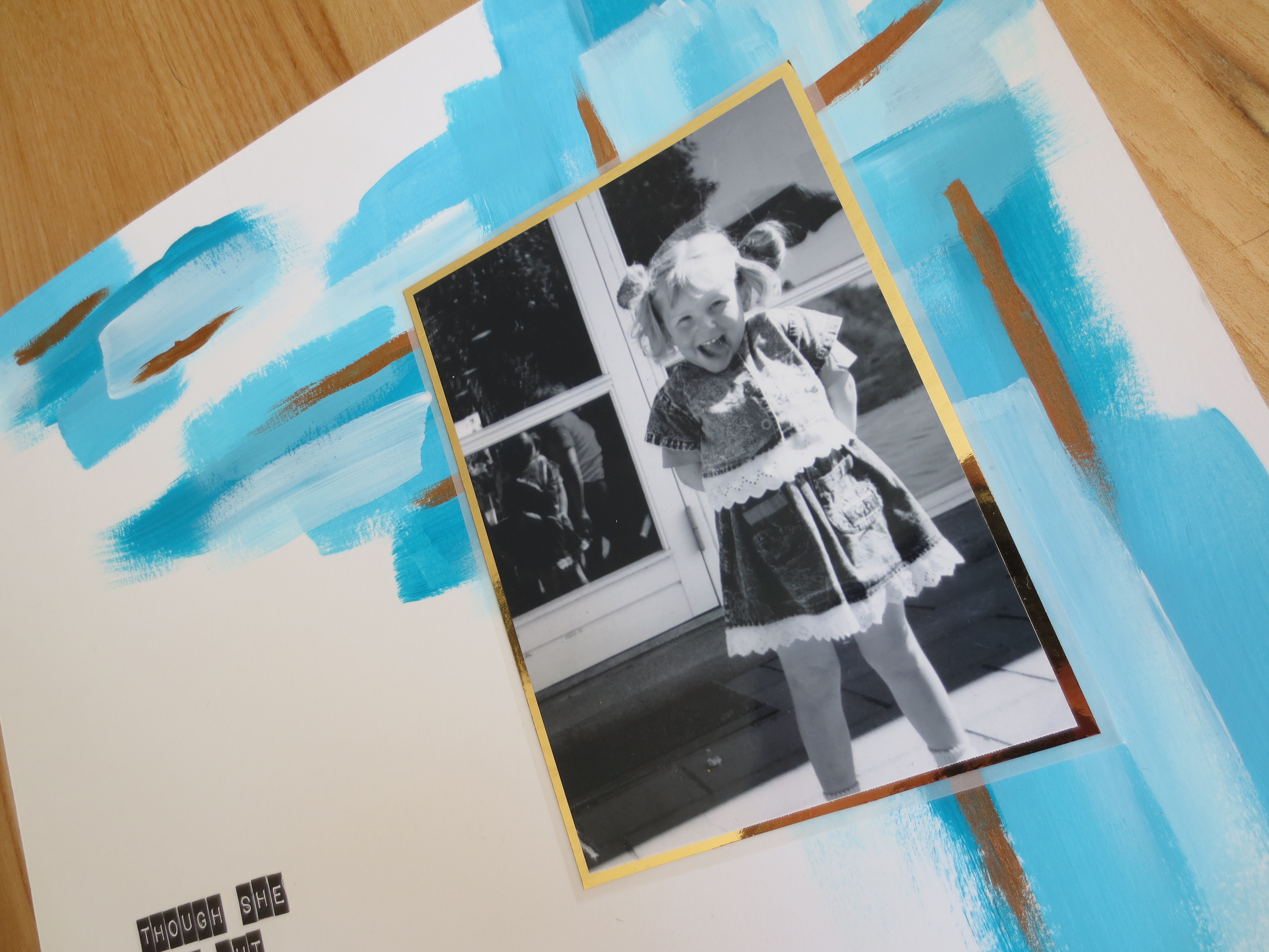 Derefter kom jeg mit billede på et lag guld karton og et lag vellum - det sværeste ved dette layout var næsten at vente på at malingen tørrede ordenligt.