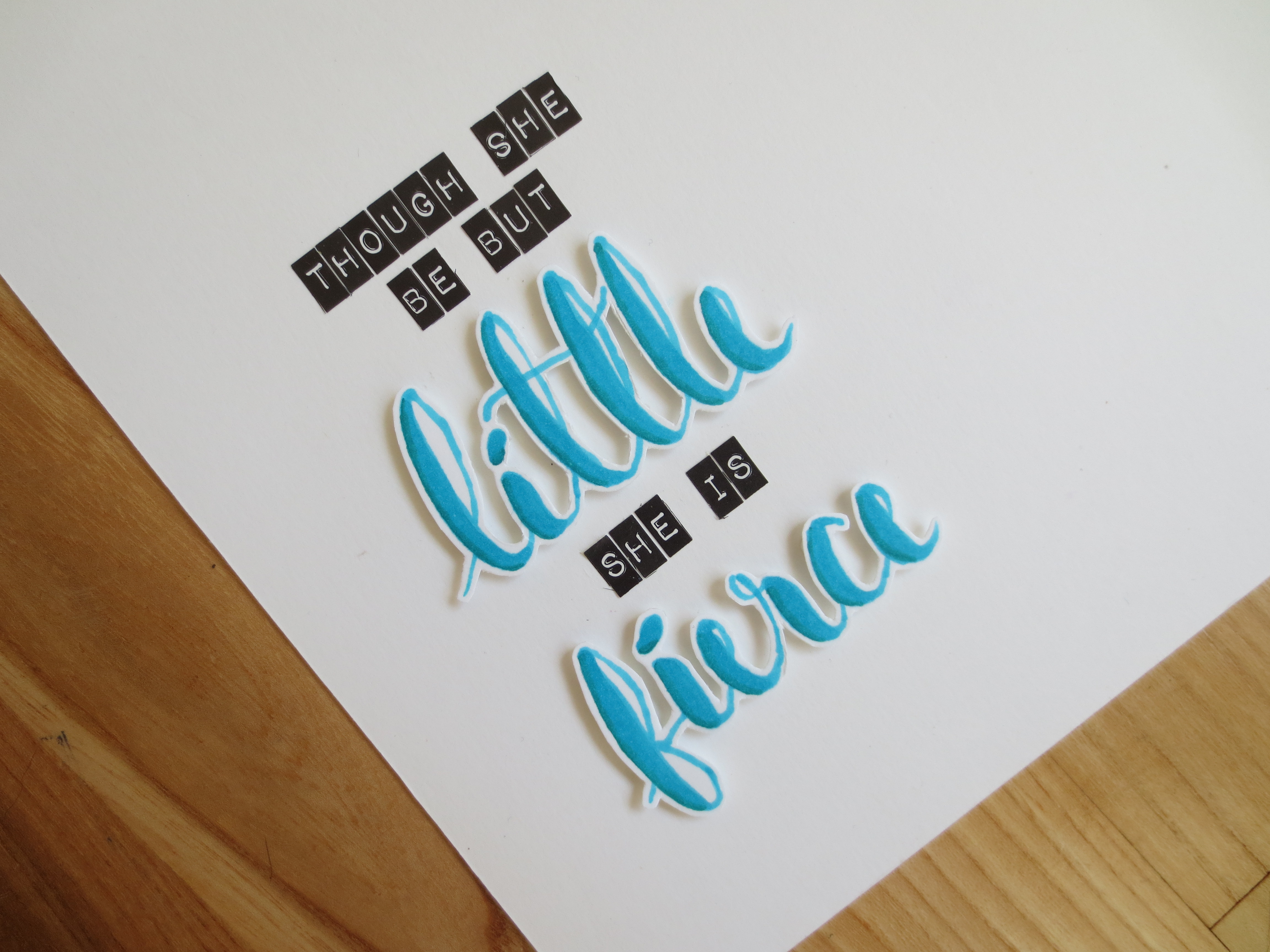 Til min titel har jeg selv skrevet ordene Little og Fierce med copic markers, og ellers tilføjet resten med små sorte block bogstaver.