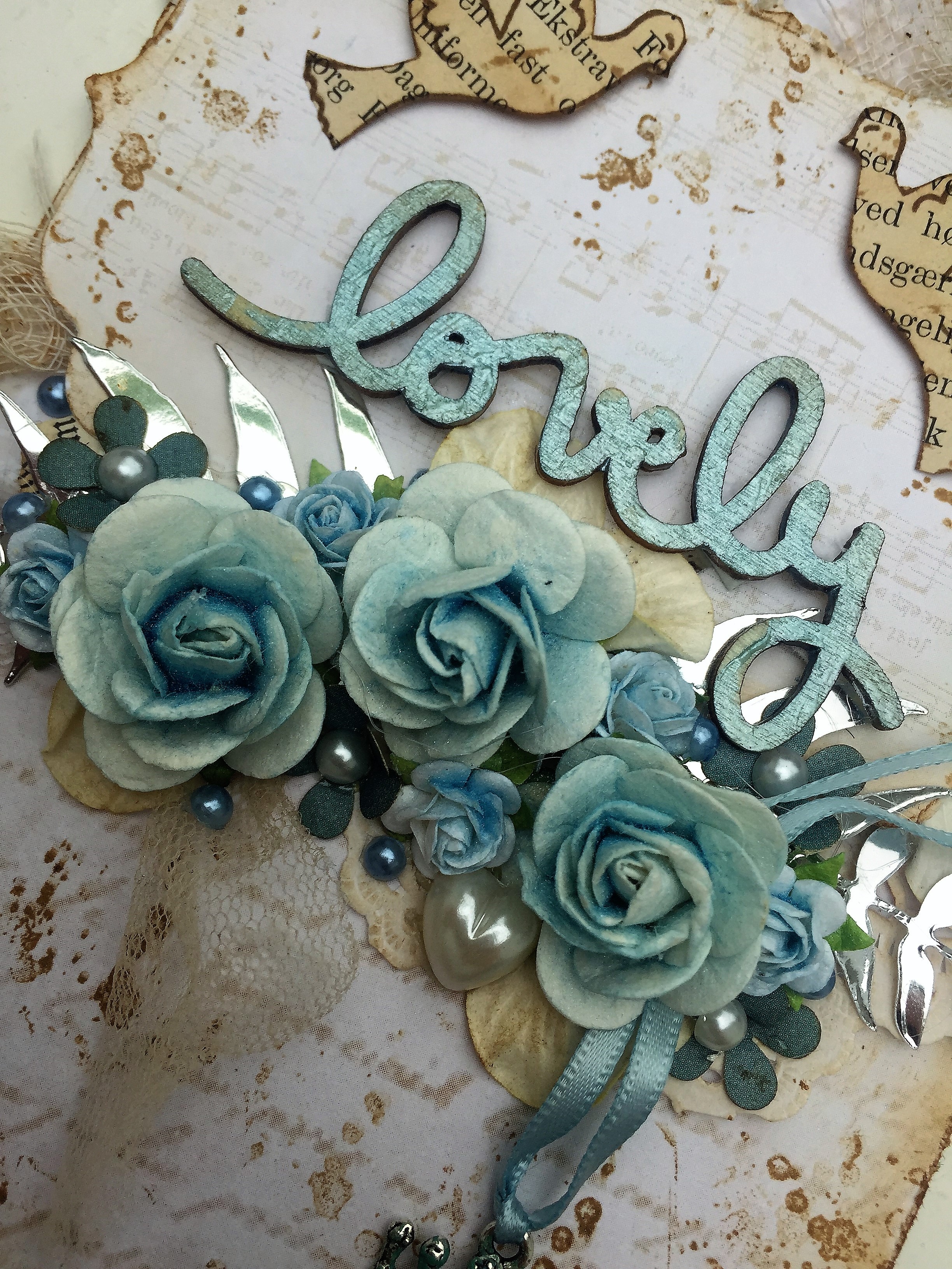 Denne gang har jeg lavet et skønt blåt vintageinspireret kort med det lækre papir fra Studio75, stempler fra Krumspring, lækre roser og masser af perler. Jeg har leget med Pigment powder, lag-på-lag og masser af distressing.