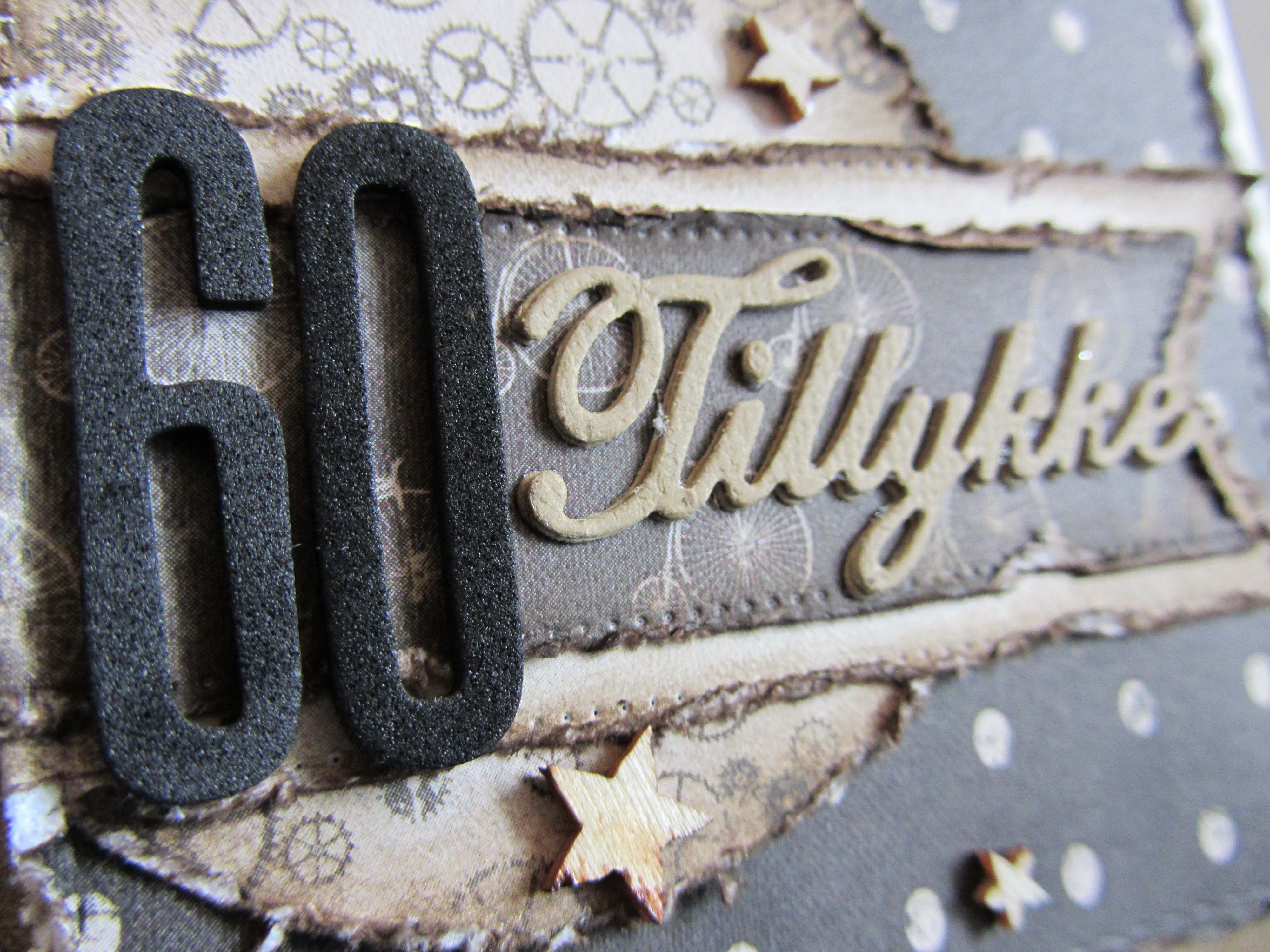 Tillykke er også en del af et diesæt fra Nellie Snellen. Jeg har skåret den ud 3 gange, og har derefter limet dem ovenpå hinanden. På den måde er det nærmest som et stykke chipboard.