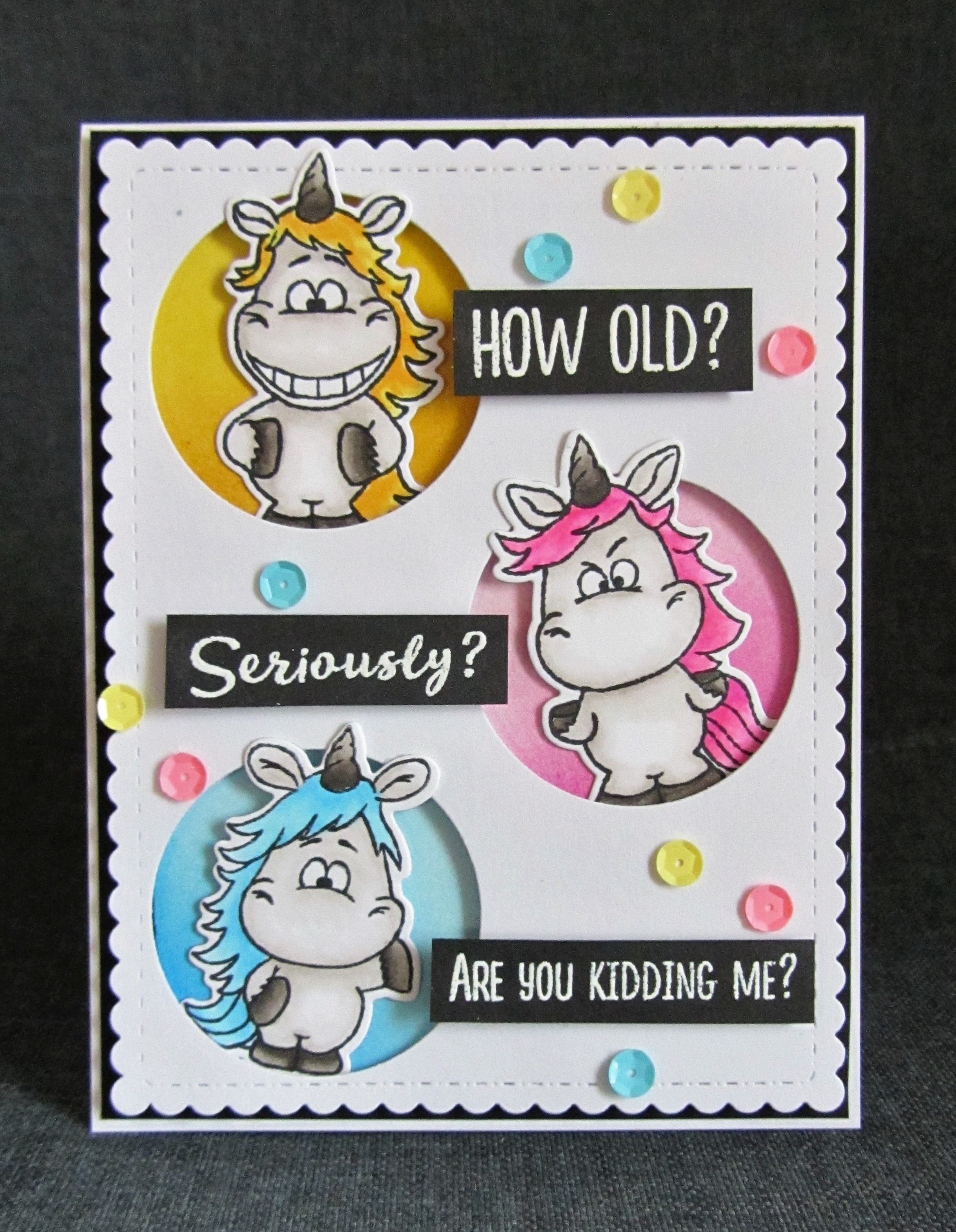 Gerda Steiner laver nogen super søde stempelsæt, og i dag vil jeg vise et kort, hvor jeg har brugt sættet Moody Unicorns.