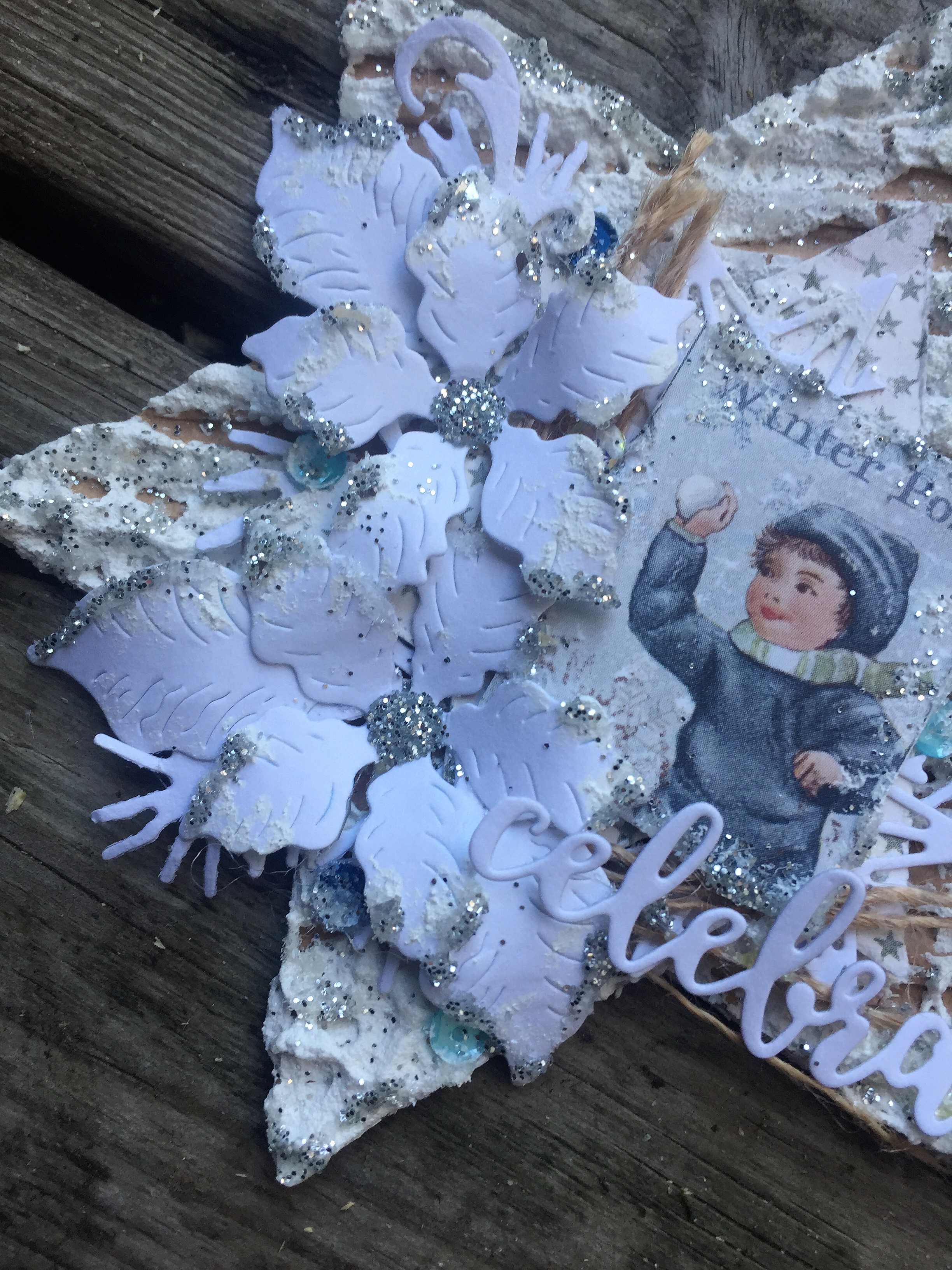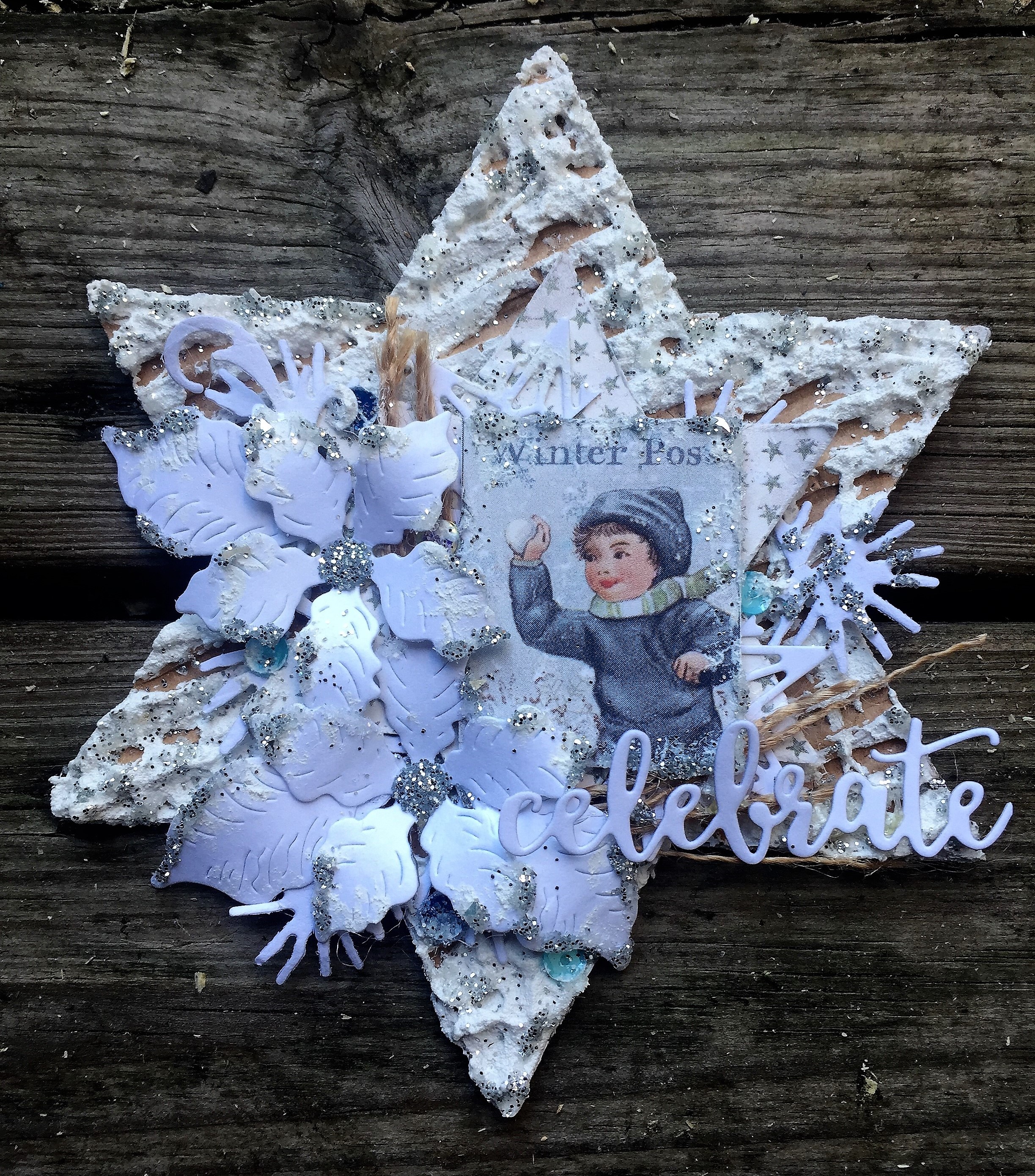 Denne gang har jeg lavet en julestjerne pyntet med MASSER af snowpaste og glitter.