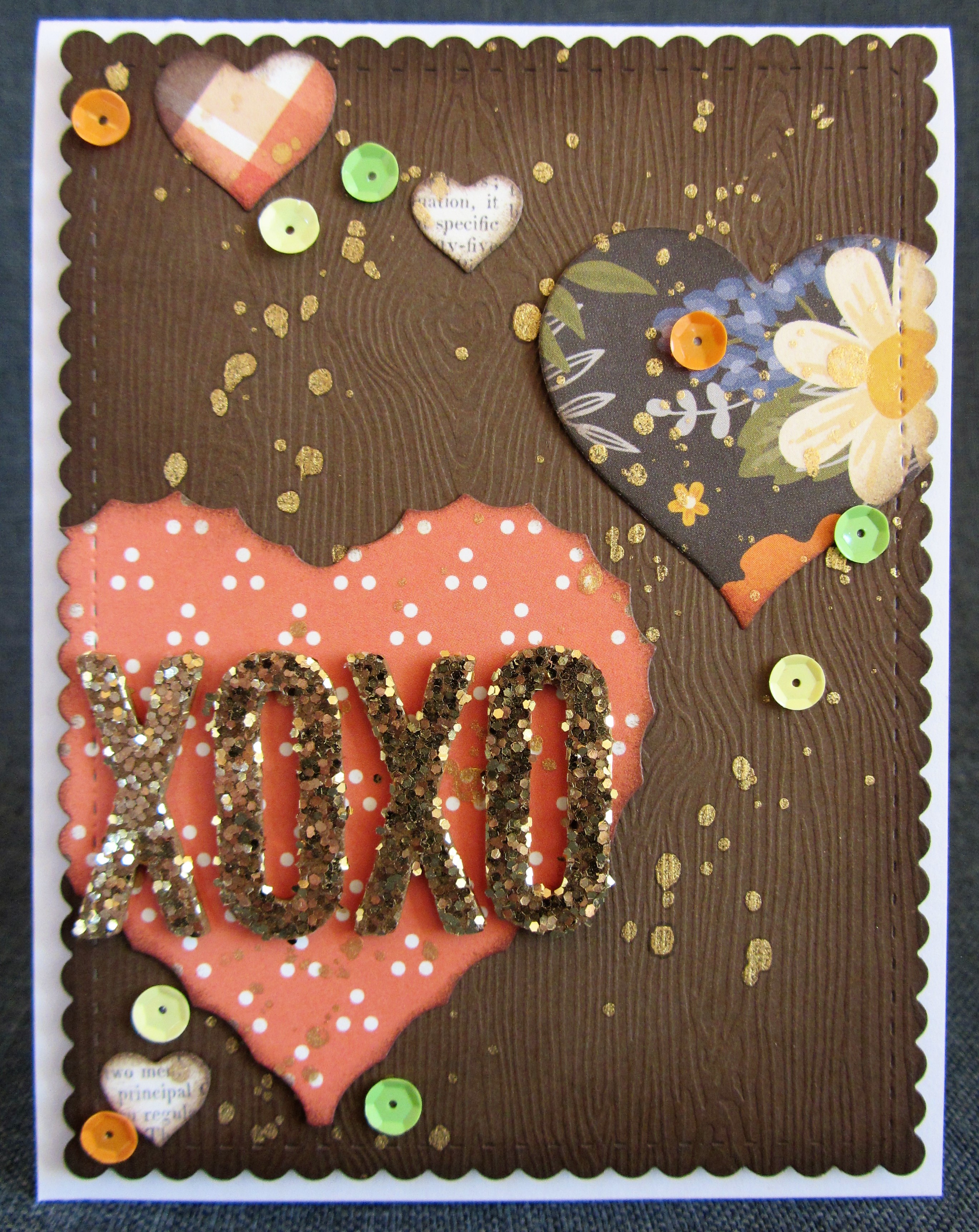 Alle papirerne stammer fra september kittet. Hjerterne er skåret ud med Nellie Snellens Multi Frame Heart 2 sæt.