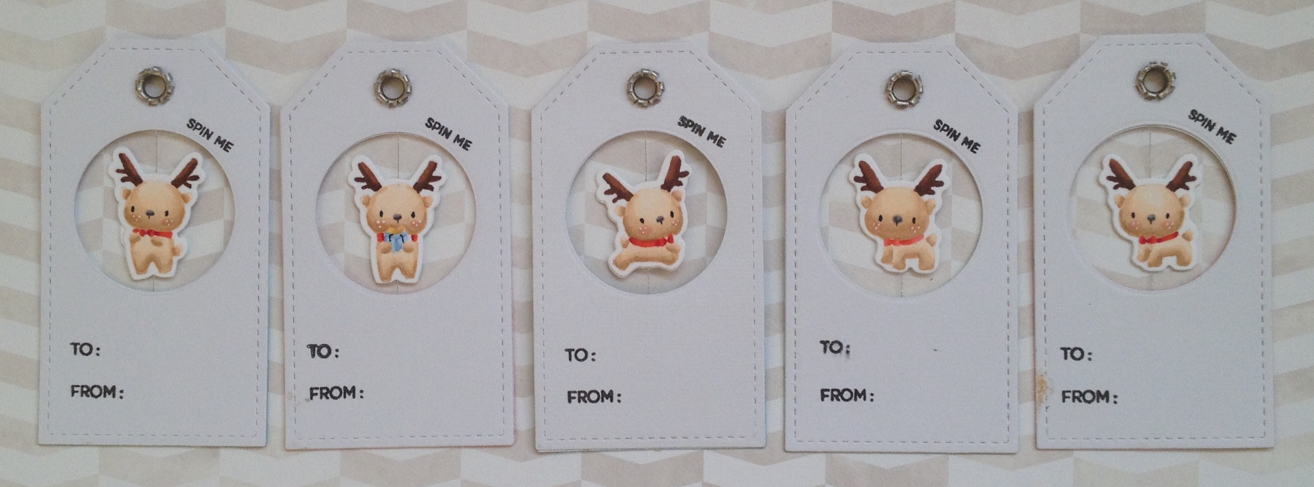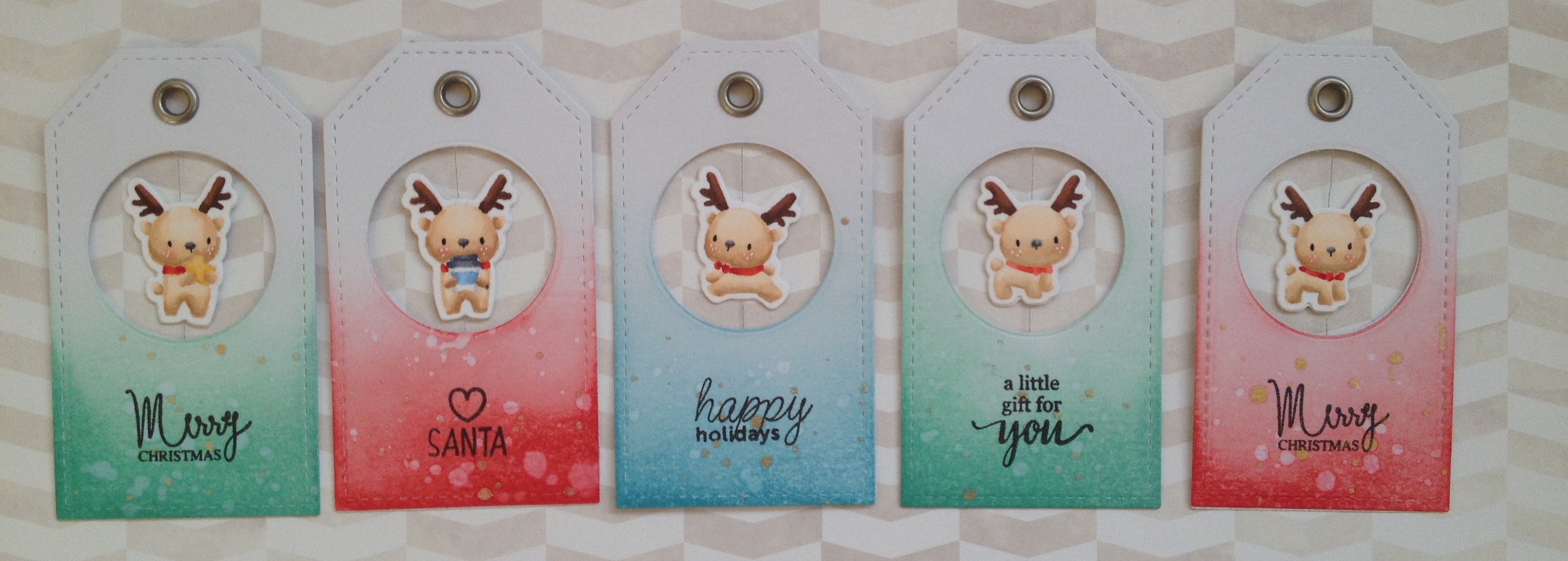 Mama Elephants Reindeer Games er et af mine mest brugte stempelsæt, især fordi det fungerer så godt til interaktive kort, så da Mama Elephant kom ud med Little Reindeer Aganda tidligere på året var jeg solgt med det samme. Det stempelsæt har nemlig mange af de samme rensdyr, bare i mindre størrelse, og når man kombinerer det med de dies der hører til kan man lave de sødeste små interaktive kort - i dette tilfælde gavemærker.