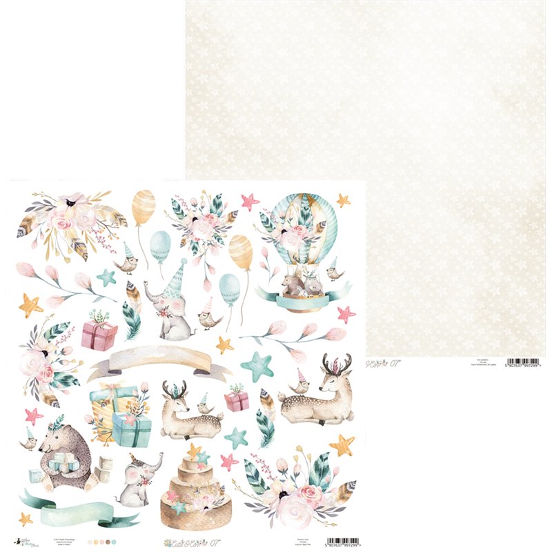 Farverne er sarte og smukke sammen. De indbyder til romantiske børnekort, dåbskort eller bryllupskort. Der er inegn af mønsterarkene som ikke er anvendelige - både forside og bagside er skønne.