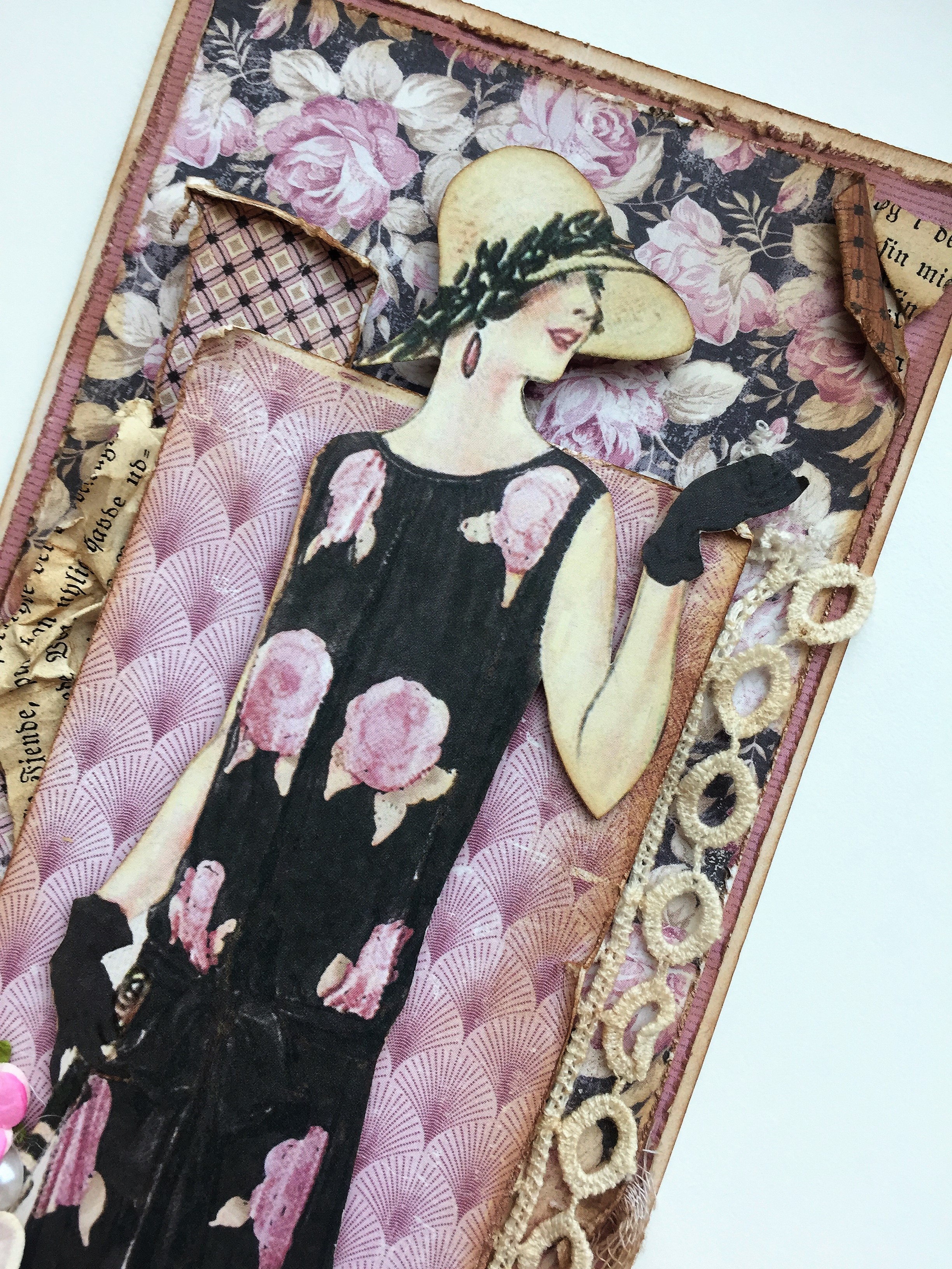 Papiret er distresset, revet og sværtet med distress oxide Vintage photo.