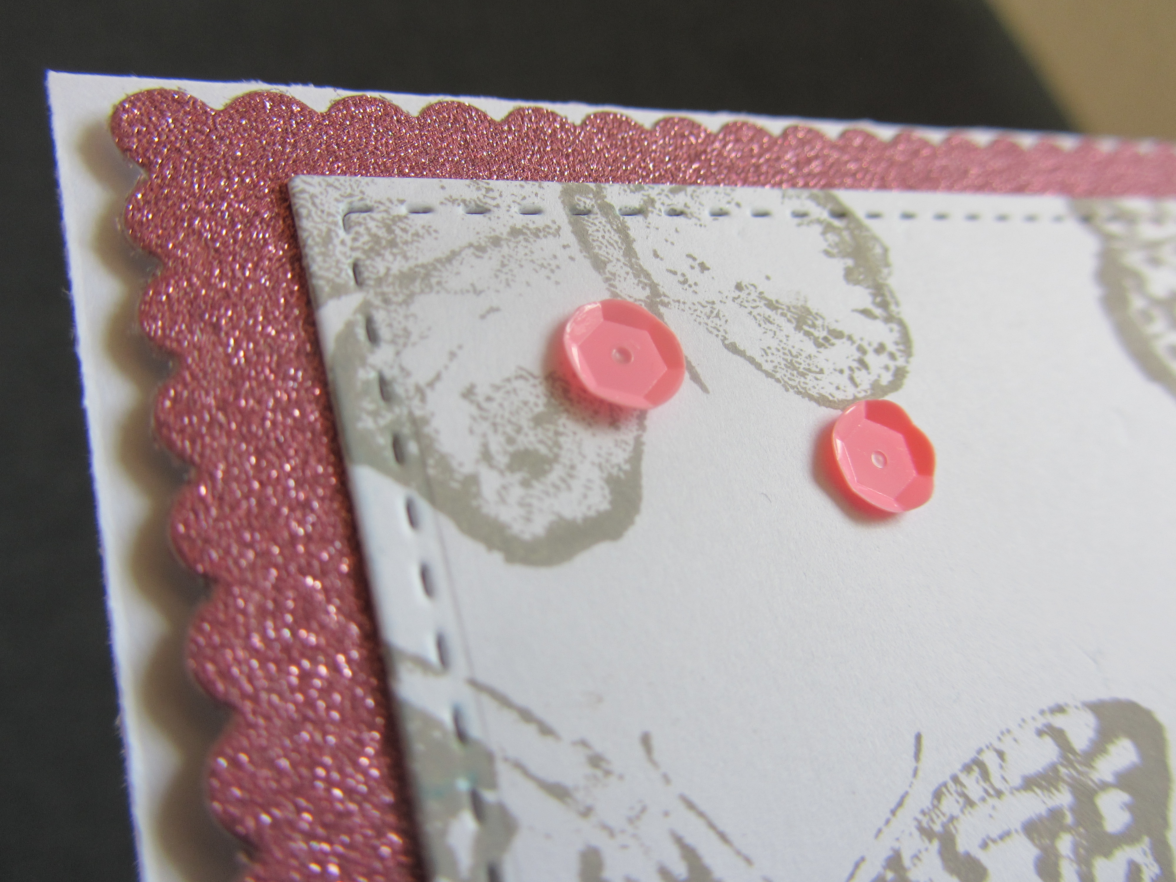 Jeg har brugt en die fra samme Mama Elephant sæt til rammen i pink glitter karton.