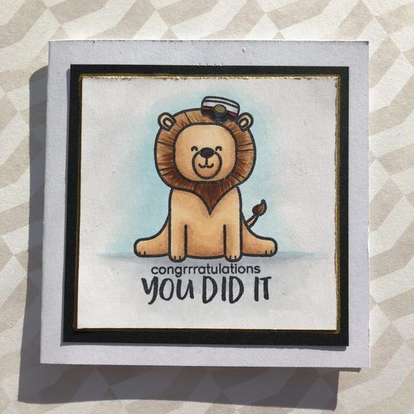 Derfor har jeg her lavet et kort hvor der leges med ordet Congratulations (tillykke) og Grrr fra en løves knurren.