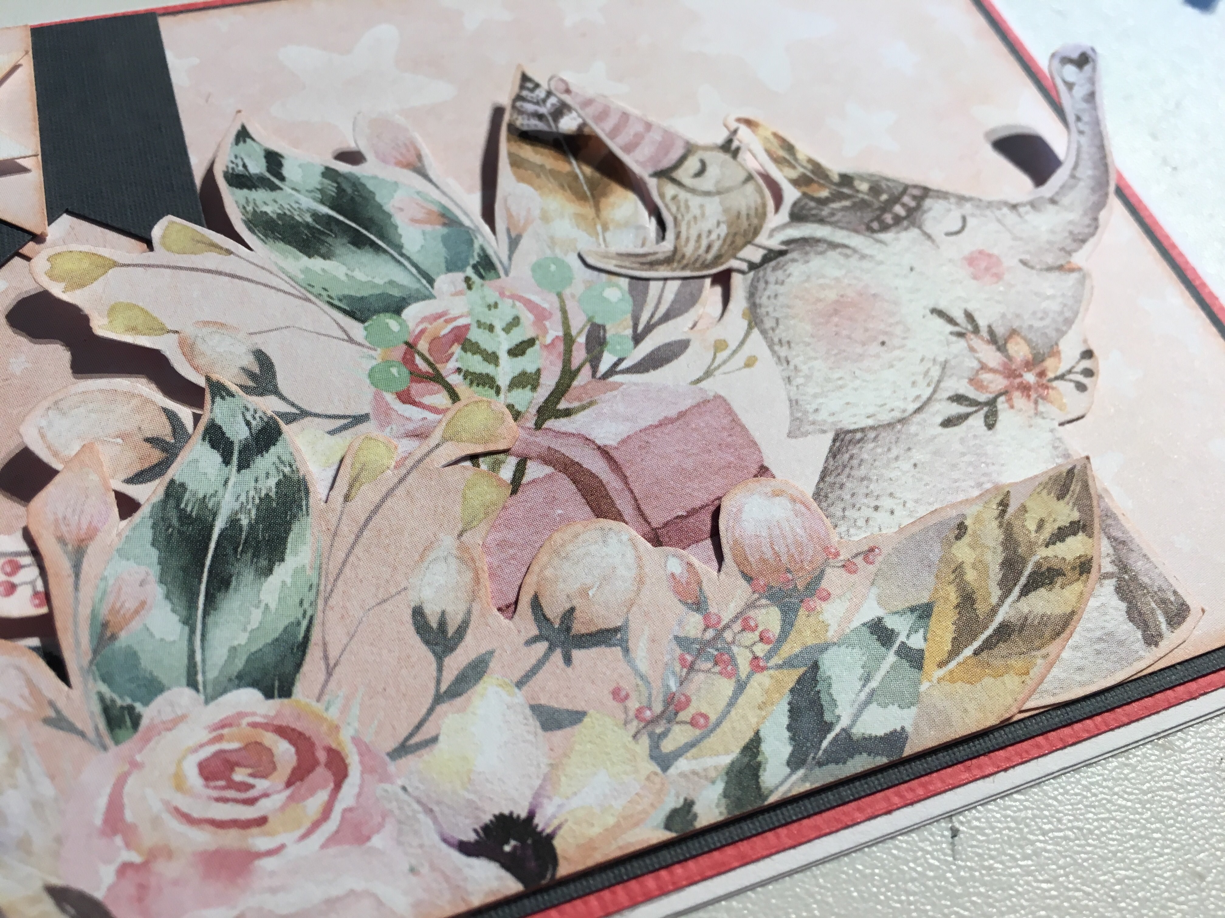 Med simple midler kan man lave et rigtig fint kort ved at klippe figurerne ud. For at få dem til at poppe har givet kanten en tur med Ranger Distress Ink i farven Tattered Rose. Jeg har kun kommet dobbeltklæbende på nederste del af figurerne. Dette får dem til at svæve frit.