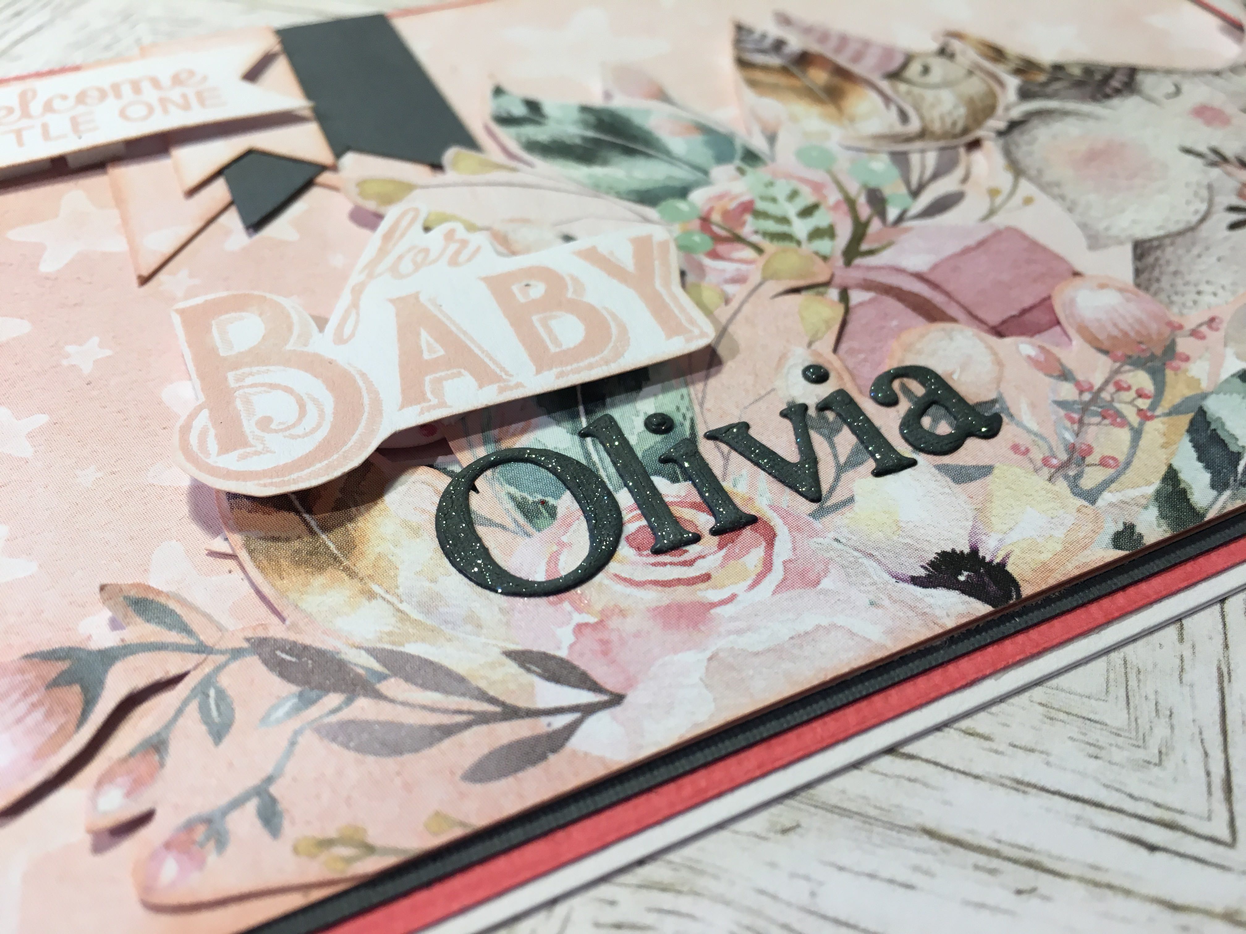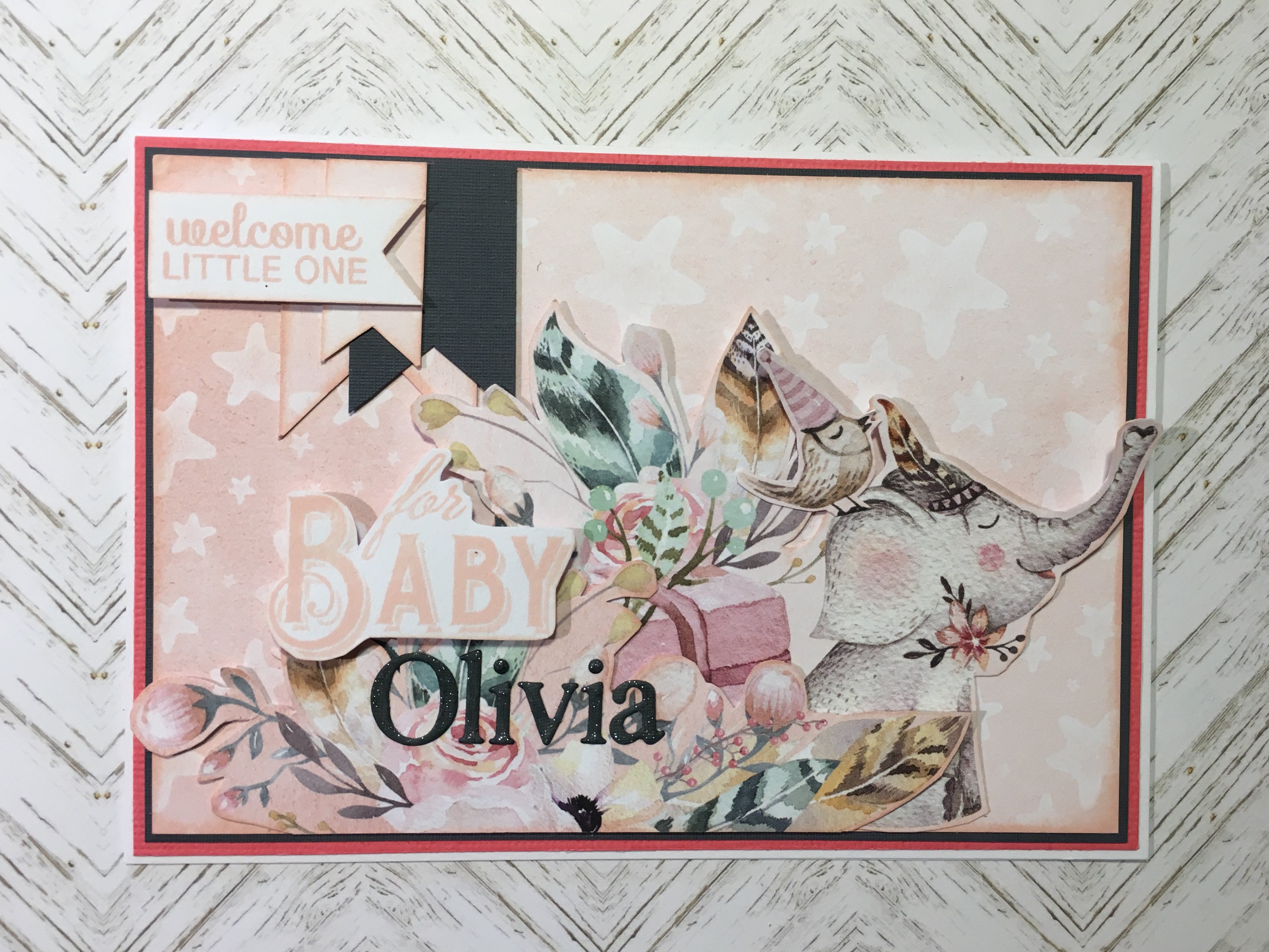 Teksterne er fra hhv. Mama Elephant - Nursery Deco og Waltzing Mouse Stamps - Little Darling Sentiments - og begge er stemplet med Distress Oxide - Tattered Rose, da Oxides er meget bedre til at stemple med frem for alm. distress ink. Teksterne er i øvrigt sat på med 3d puder.