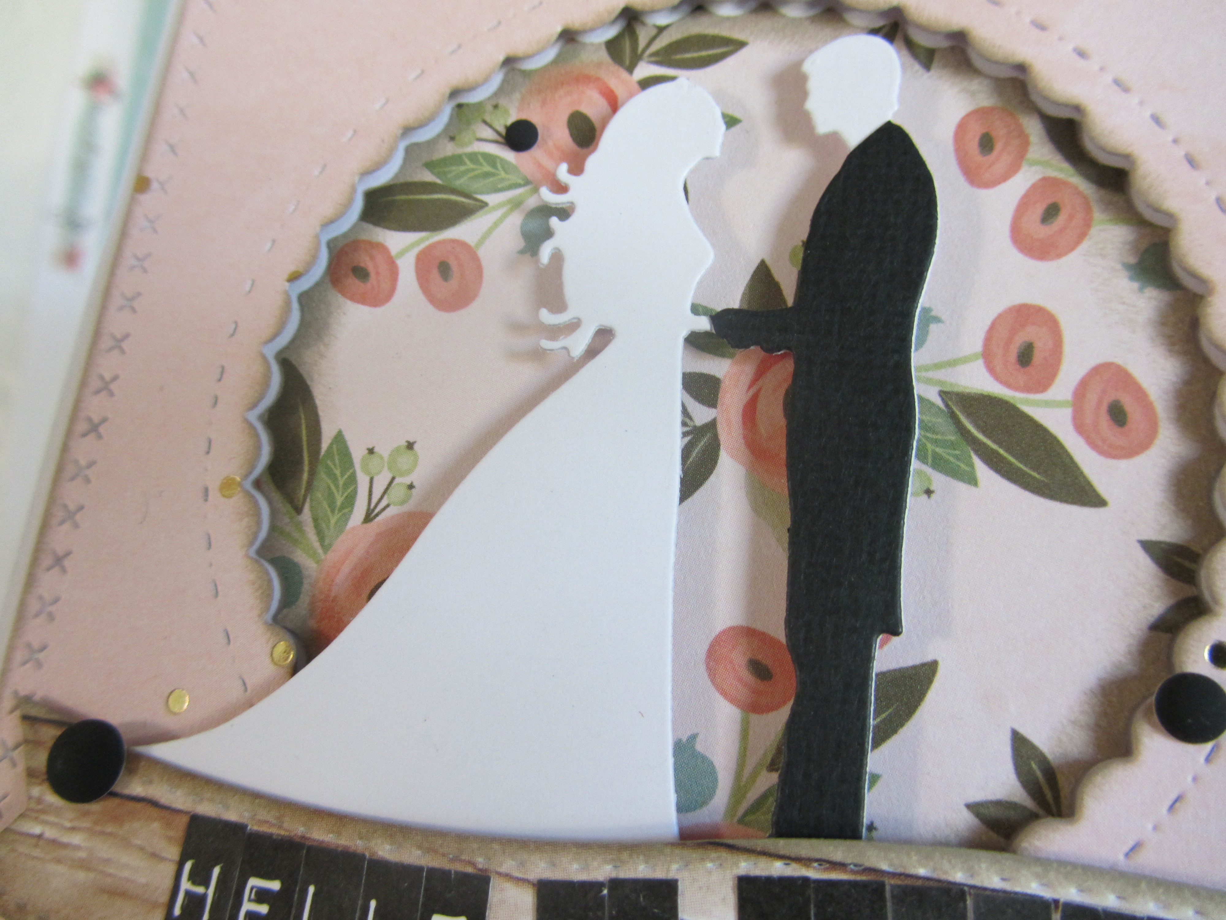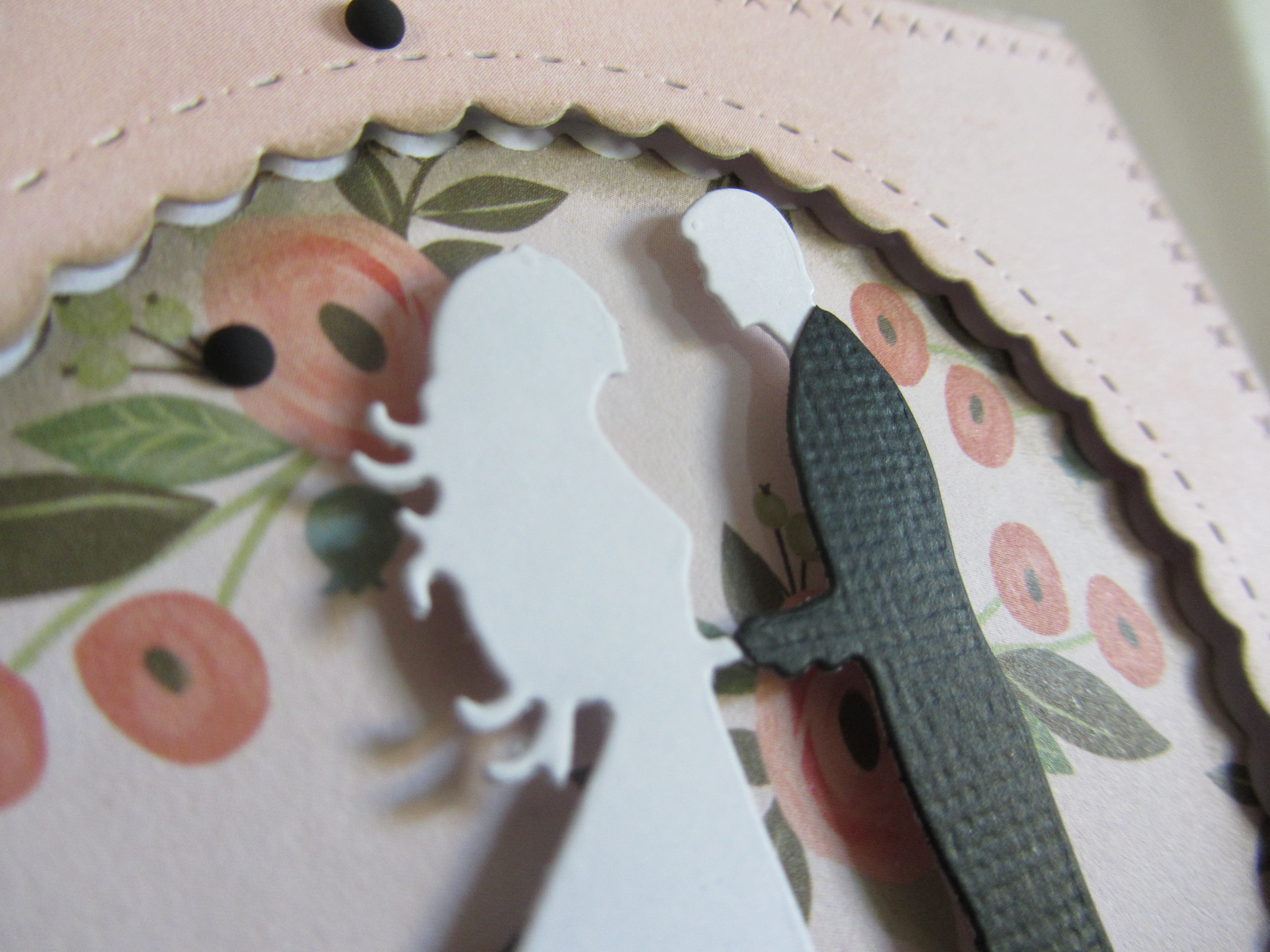 Dien med brudeparret har jeg skåret ud både i sort og hvidt karton. Jeg har derefter klippet en del af det sorte væk, så jeg kun havde gommens tøj tilbage, og det har jeg limet ovenpå den hvide del, der matcher.