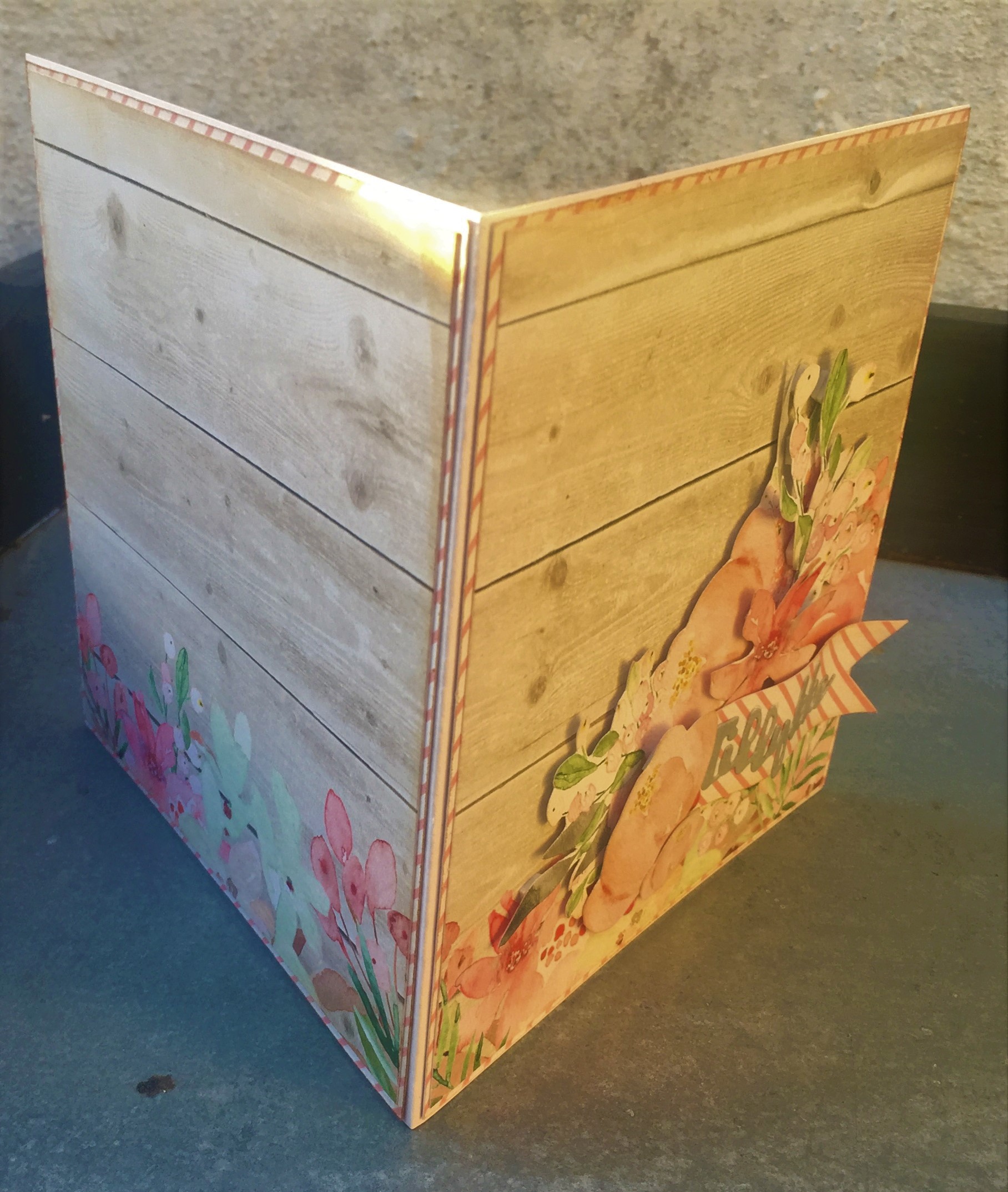 Mønsterpapiret er også sat på bagsiden, hvor blomsterborden i bunden "mødes" med mønster på forsiden.