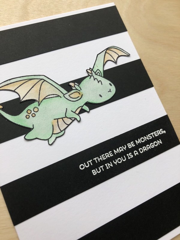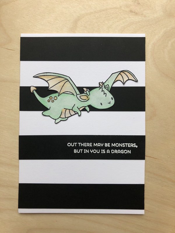 Så derfor gik jeg i gang med at stemple og farvelægge på livet løs med mine tombows - og det kom der mere end et par drager ud af - Dog synes jeg de er så fine at man ikke behøver mere end en for at lave et skønt kort.