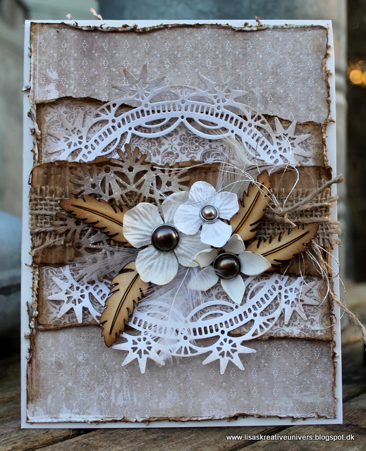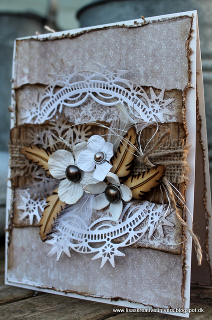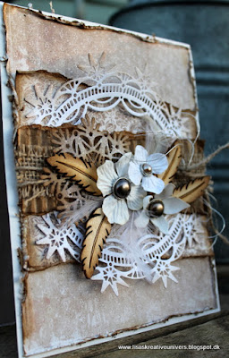 Jeg har valgt at lave et kort i de brune og hvide nuancer. Jeg har brugt dies fra Amy Design, SNEFNUG MED SKYGGE og FROST RING.
