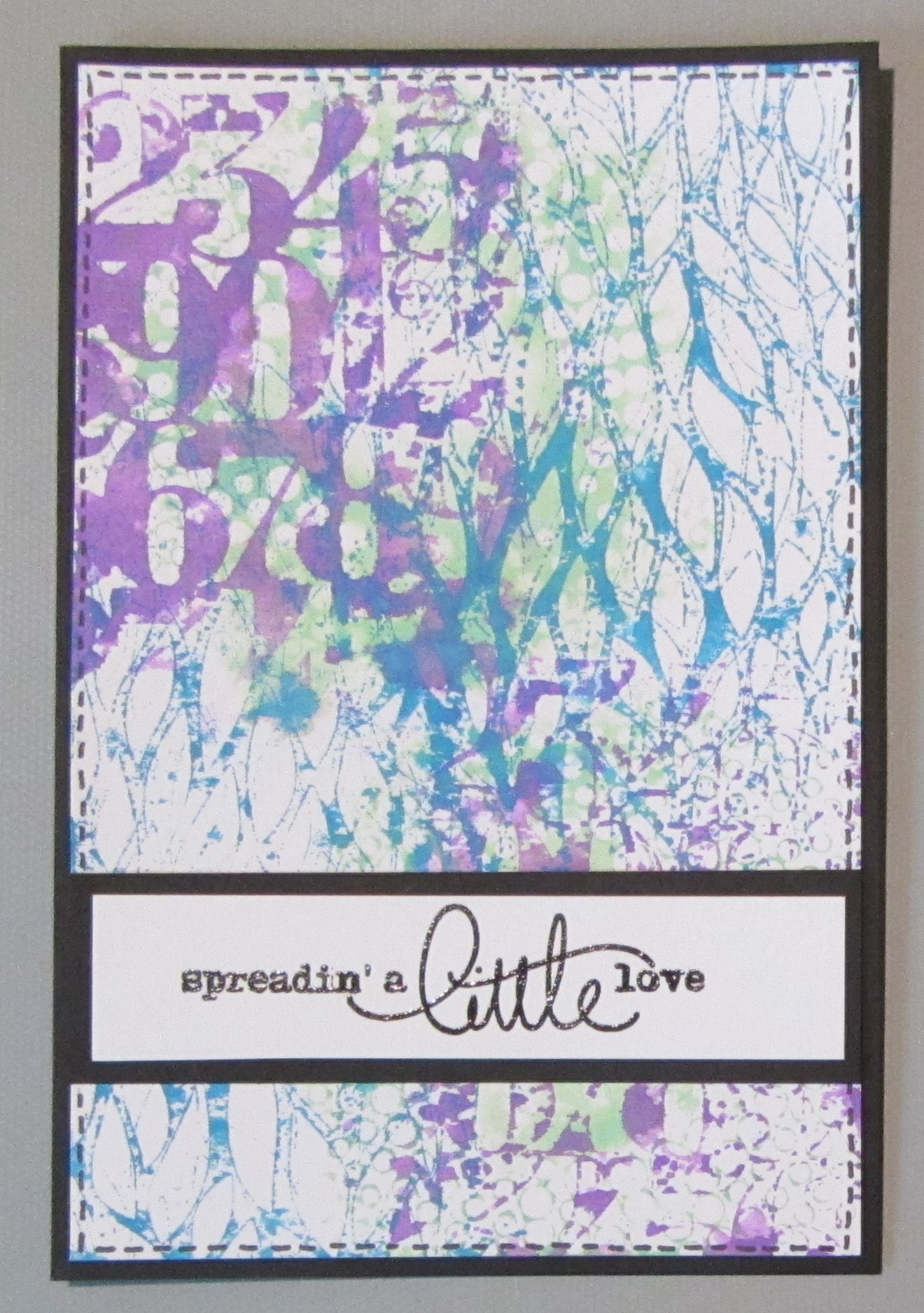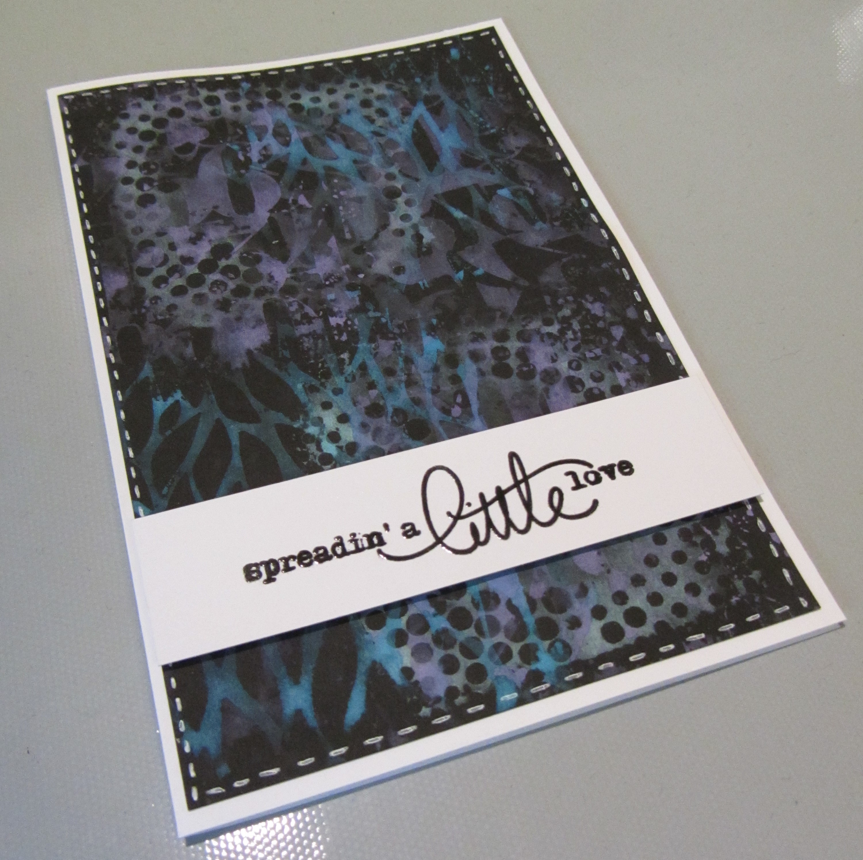 Jeg har lavet kortene ved at trykke Distress oxide ud på min stencil, spraye lidt vand på og trykke min stencil ned på mit papir.