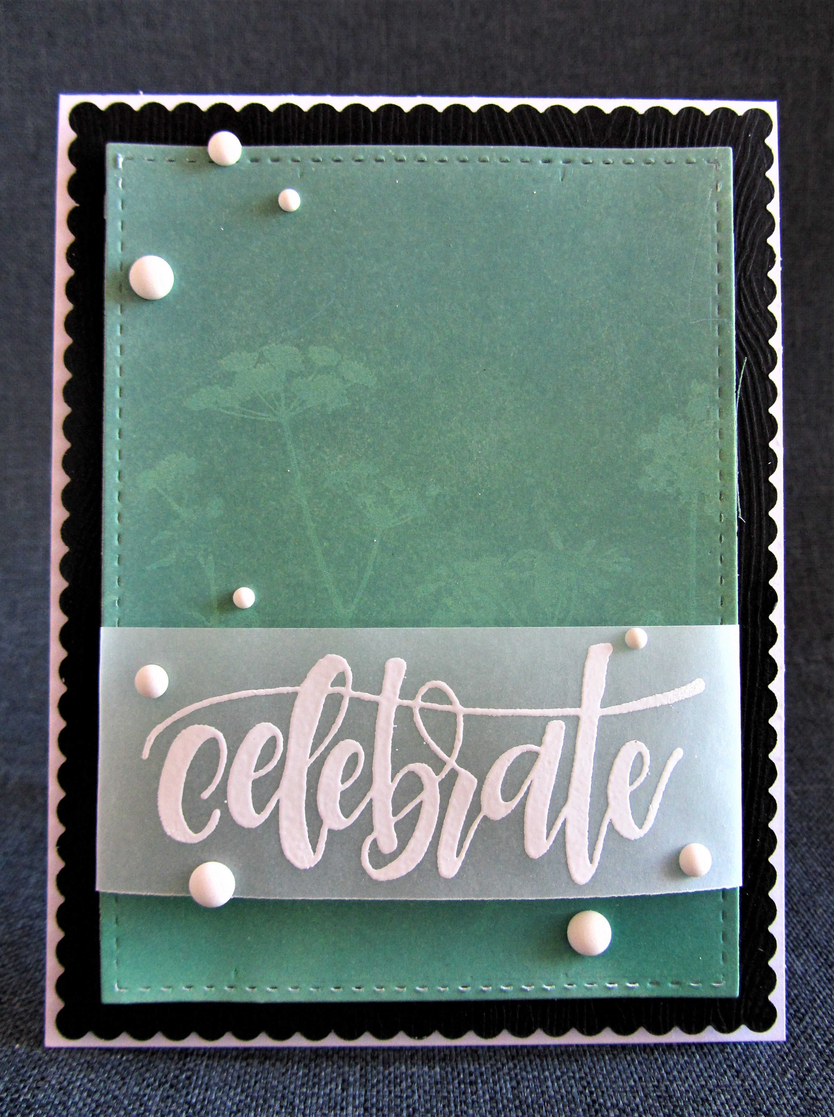 Min tekst er fra et Ranger LetterIt stempelsæt. Jeg har stemplet det på vellum med Versamark, og embosset det med en hvid embossingpulver fra Wow.