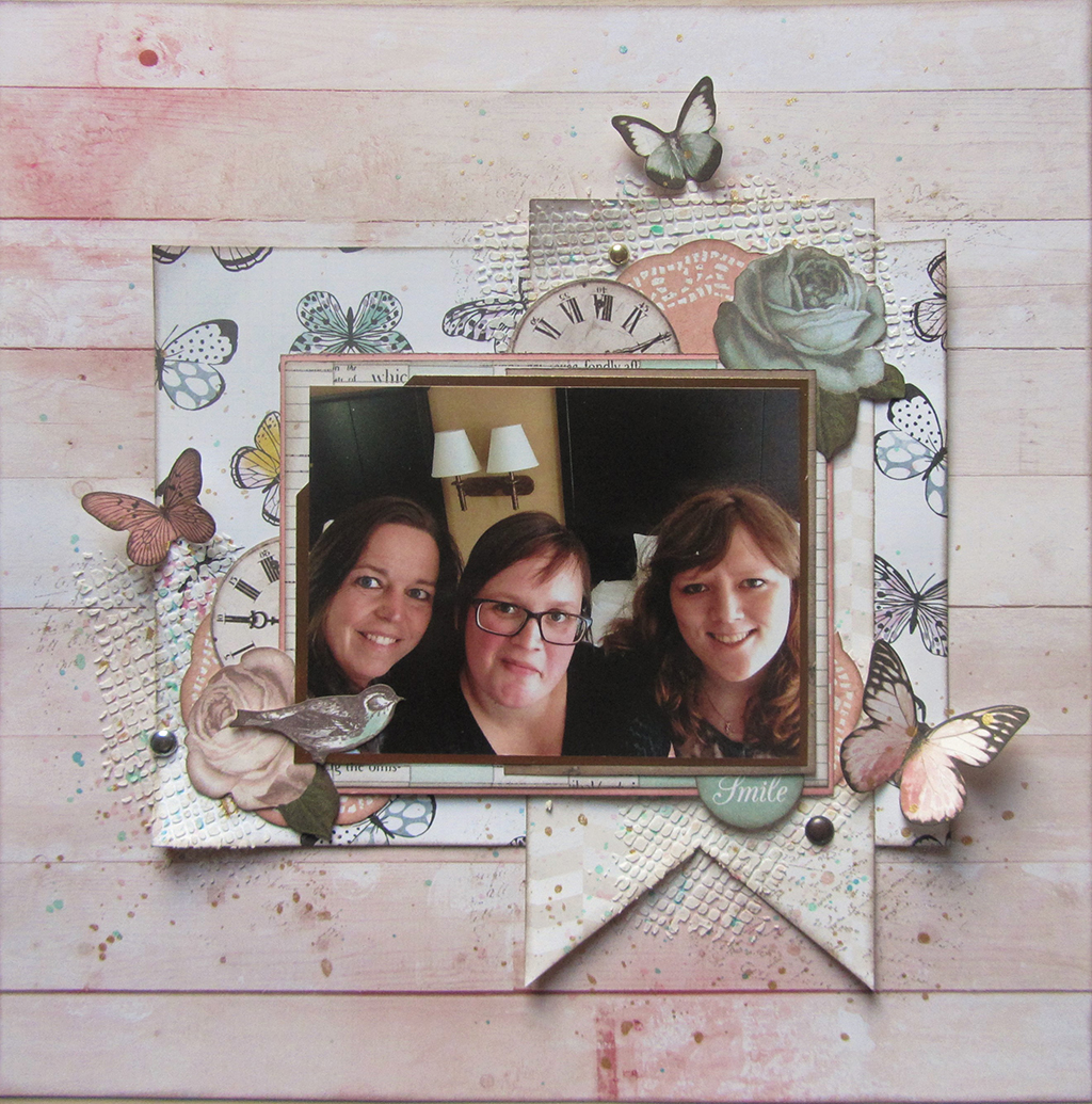 Jeg har bevidst valgt ikke at give layoutet nogen titel, da jeg synes der sker nok på siden uden. I stedet har jeg blandt andet placeret en die cut med ordet Smile.